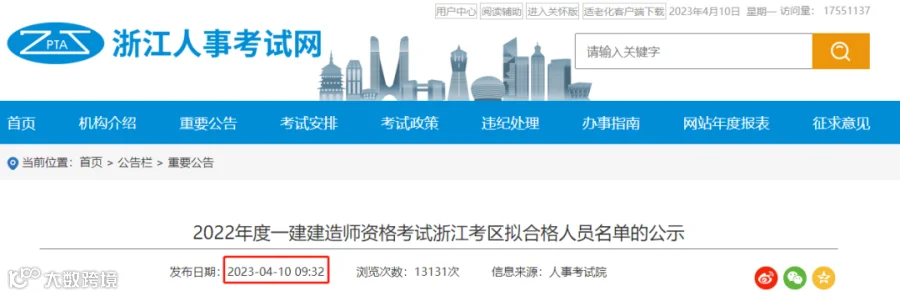 相关阅读:2022年度一级建造师资格考试浙江考区拟合格人员名单公示!