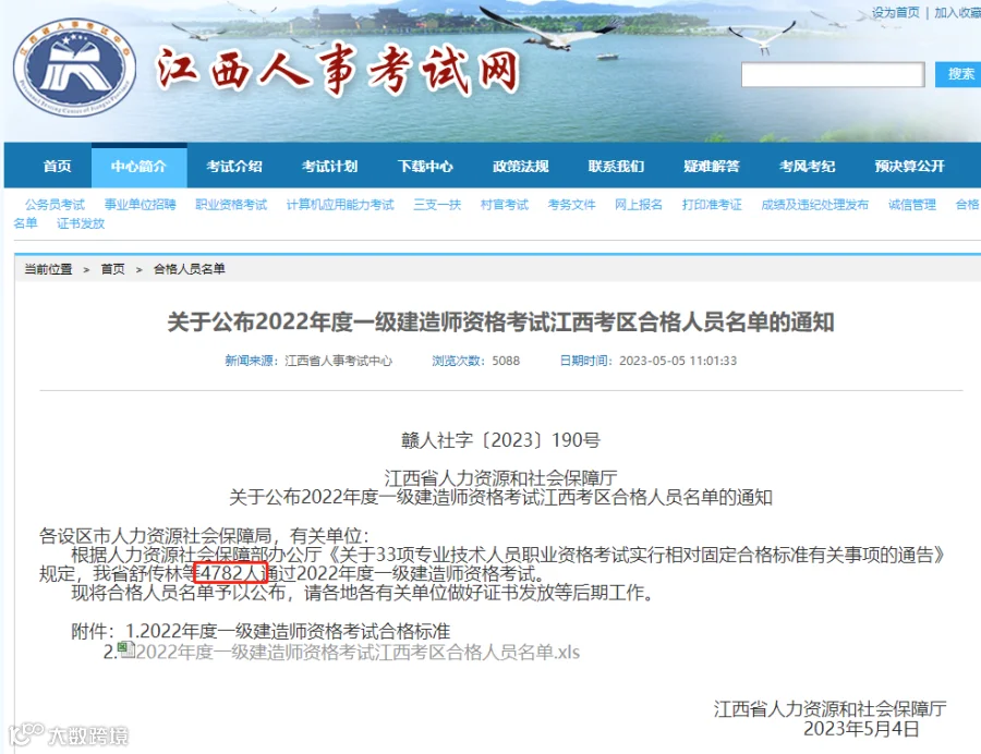 5月5日,江西人事考试网发布《关于公布2022年度一级建造师资格考试江西考区合格人员名单的通知》,4782人通过2022年度一级建造师资格考试。