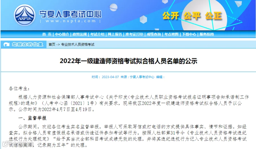 2022年度一级建造师资格考试宁夏考区全部科目成绩合格、拟取得资格证书人员公示,共753人。