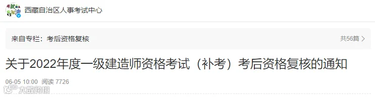相关阅读:江苏:对2022年度一级建造师资格考试(补考地区)考后资格审查!