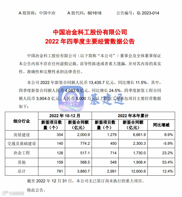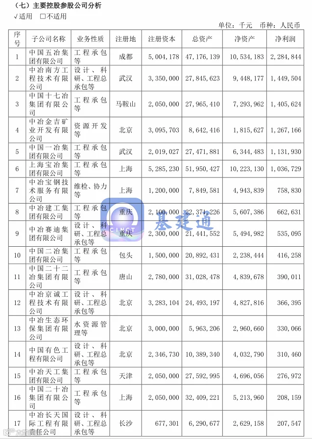 来源:中国中冶企业公告/官微、基建通大数据 转载自基建通APP作者专栏,专栏作者:川