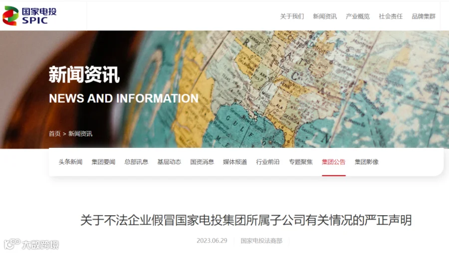 6月29日,国家电力投资集团(以下简称国家电投)发布了《关于不法企业假冒国家电投集团所属子公司有关情况的严正声明》:中广通科技(酒泉)有限公司并非国家电投集团旗下公司。