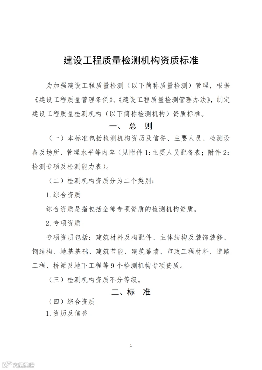 刚刚,住建部正式印发《建设工程质量检测机构资质标准》。