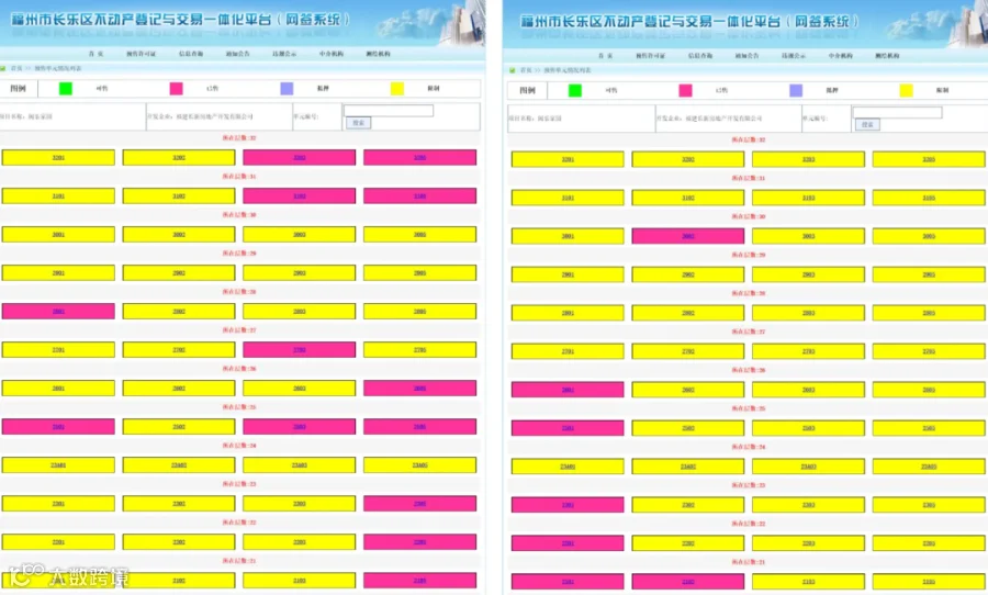 据当地网签系统,该楼盘除了已售部分之外(红色),剩余房源均为限制状态(黄色),截至目前,共327套房源产权遭冻结。