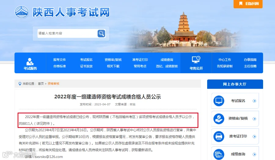 2022年度一级建造师资格考试成绩已经公布,现将陕西省(不包括榆林考区)该项资格考试成绩合格人员予以公示,共8811人。