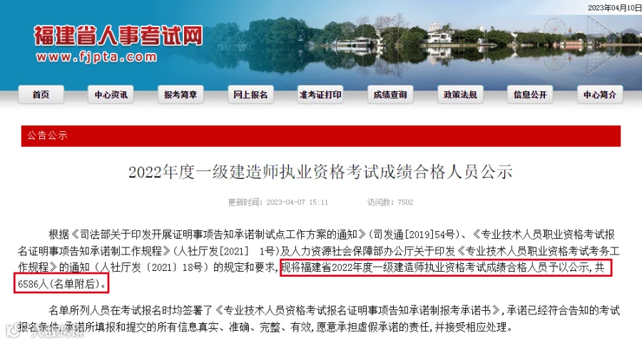 福建省2022年度一级建造师执业资格考试成绩合格人员公示,共6586人。
