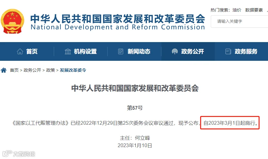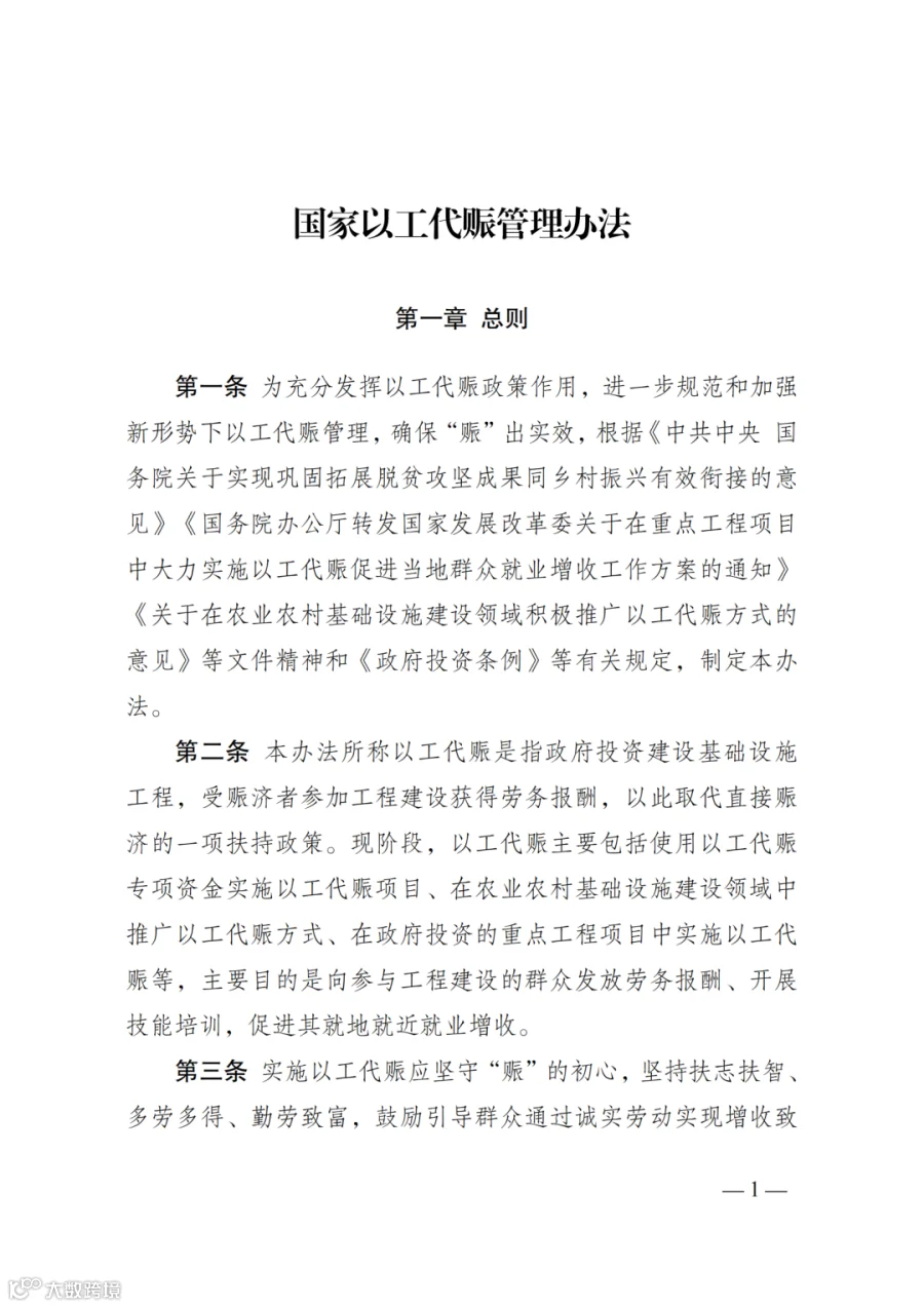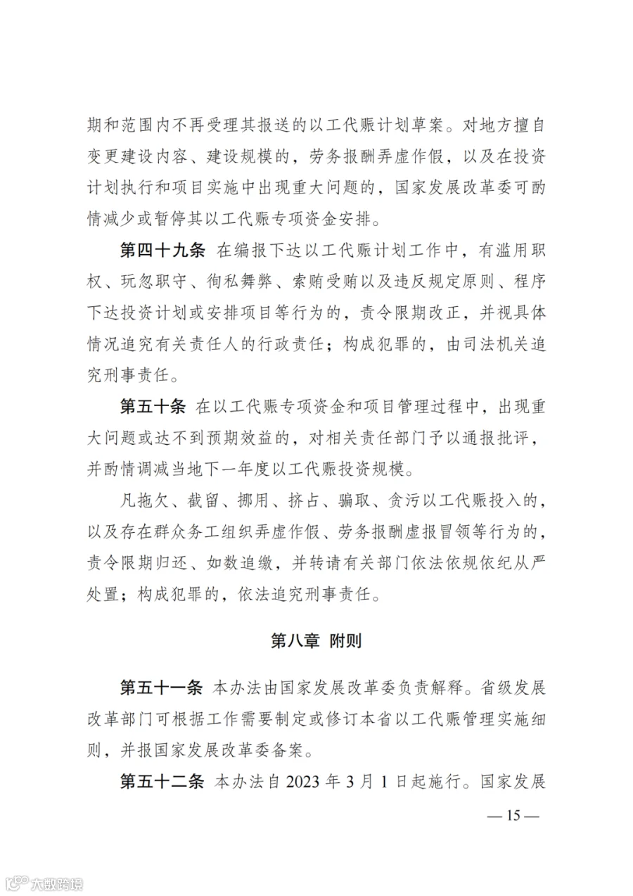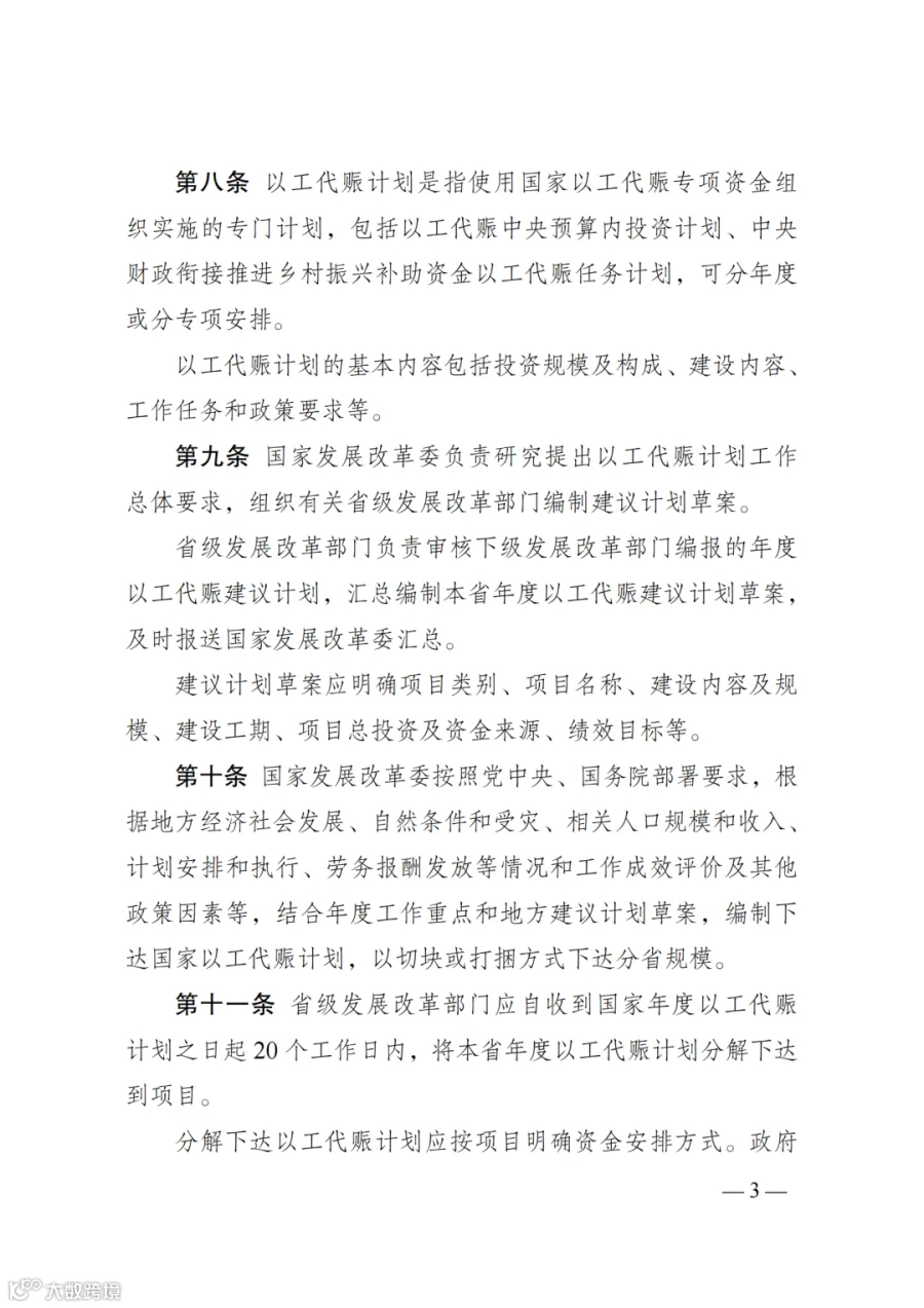 【发改委令第57号】《国家以工代赈管理办法》已经2022年12月29日第25次委务会议审议通过,现予公布,自2023年3月1日起施行。