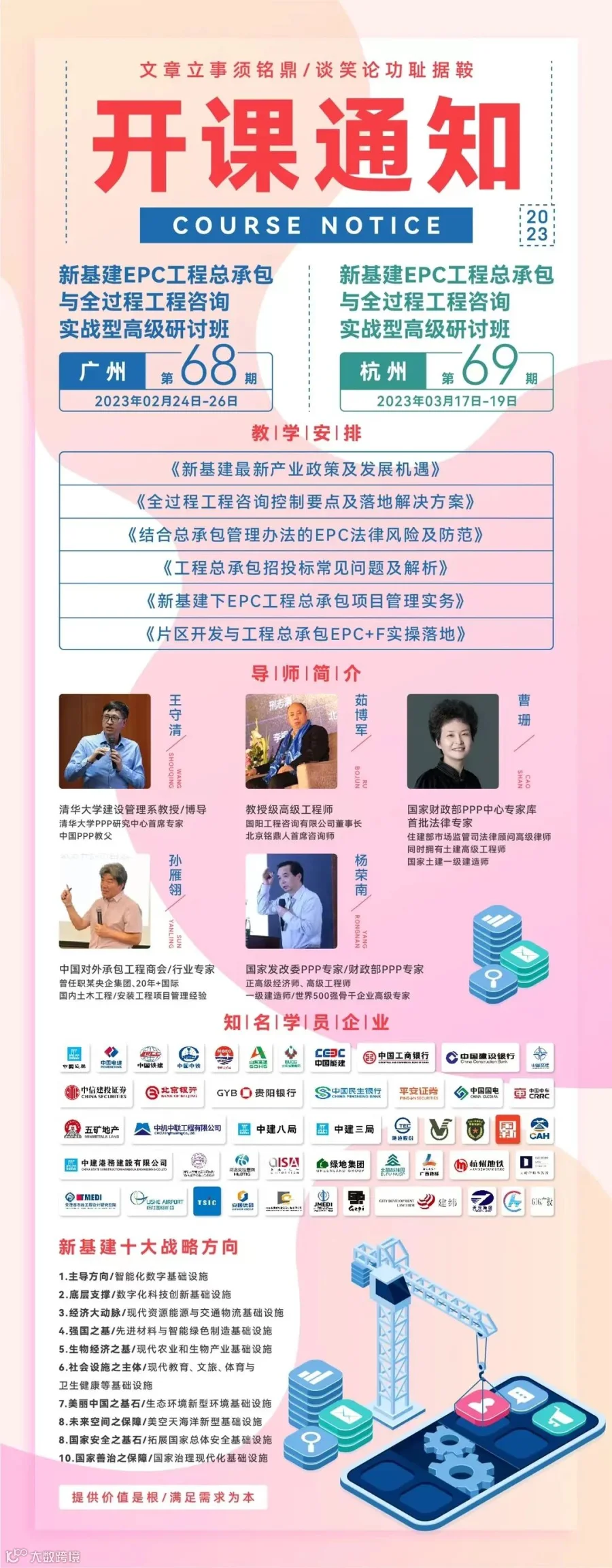 欢迎加入:新基建下EPC工程总承包与全过程工程咨询—实战型高级研讨班