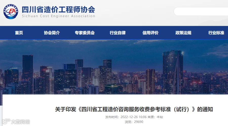 四川印发《四川省工程造价咨询服务收费参考标准(试行)》,自2022年12月23日起试行。