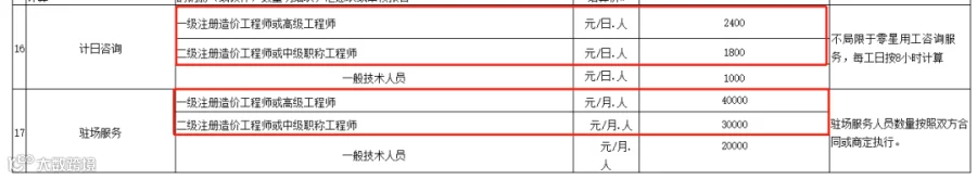 2023年1月6日,北京市建设工程招标投标和造价管理协会发布《北京市建设工程造价行业咨询服务费用计价参考》,其中计日咨询费: