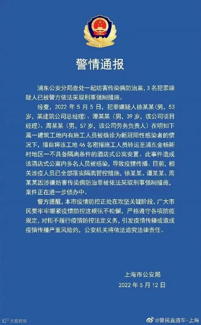 上海:引发疫情传播,一建筑公司总经理、项目经理等3人被采取刑事措施!