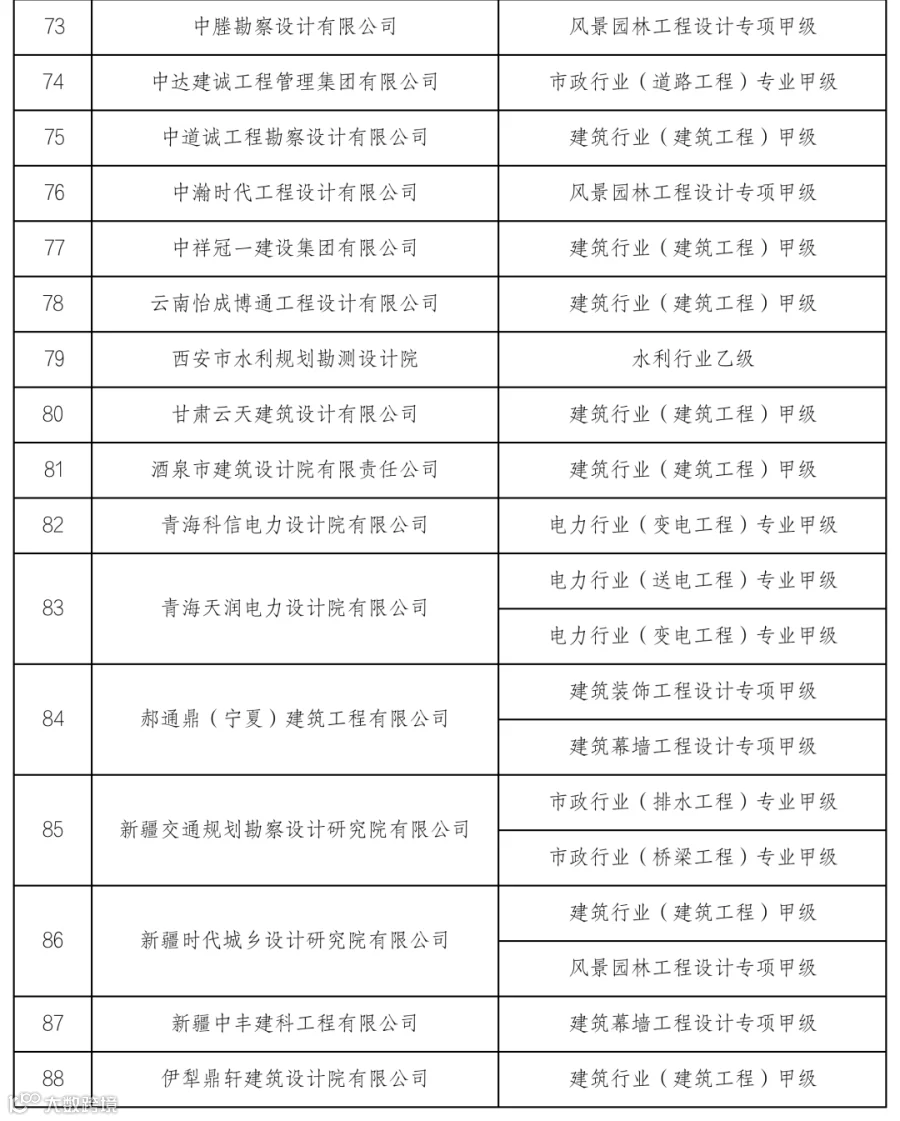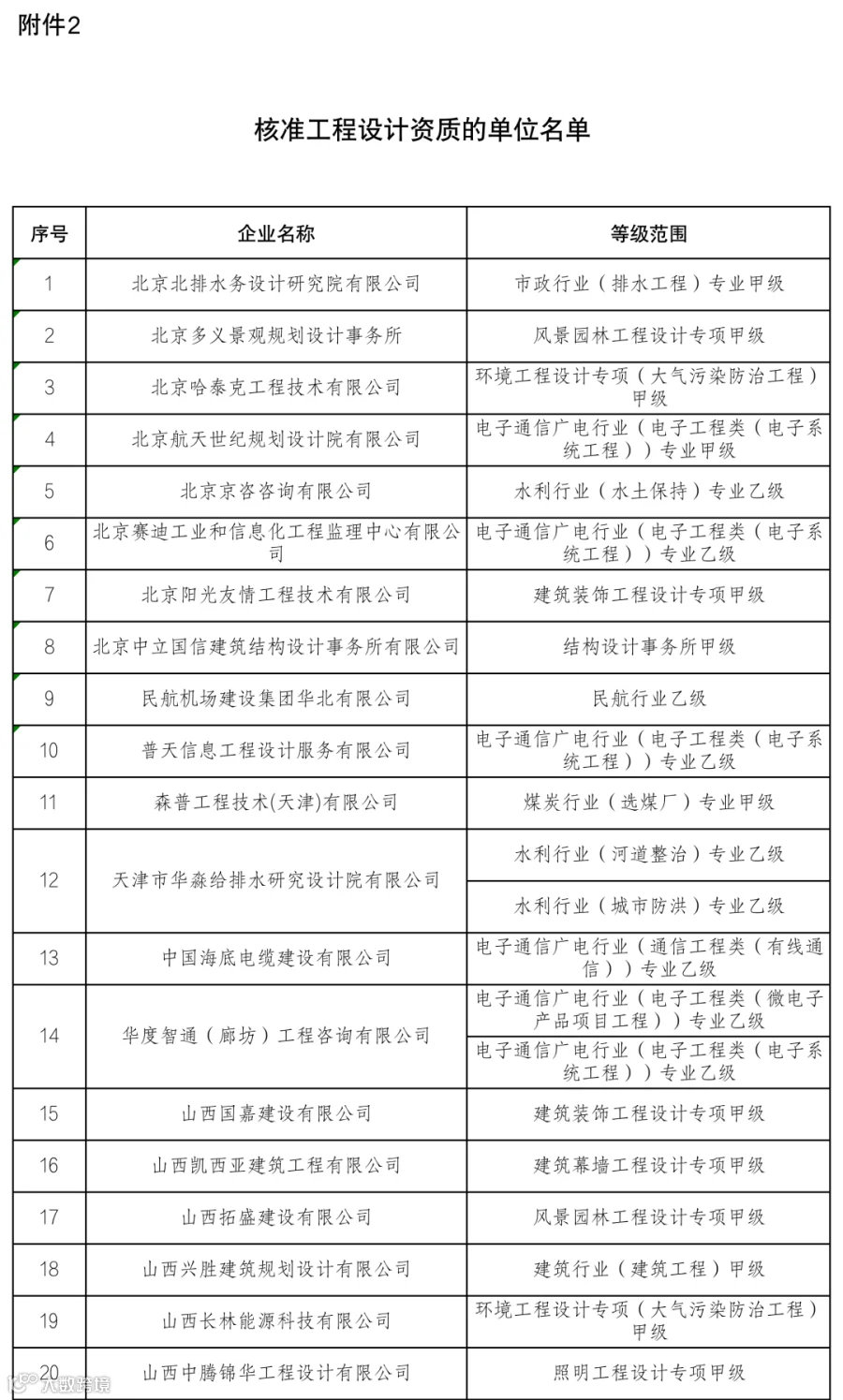 2.核准工程设计资质的单位名单