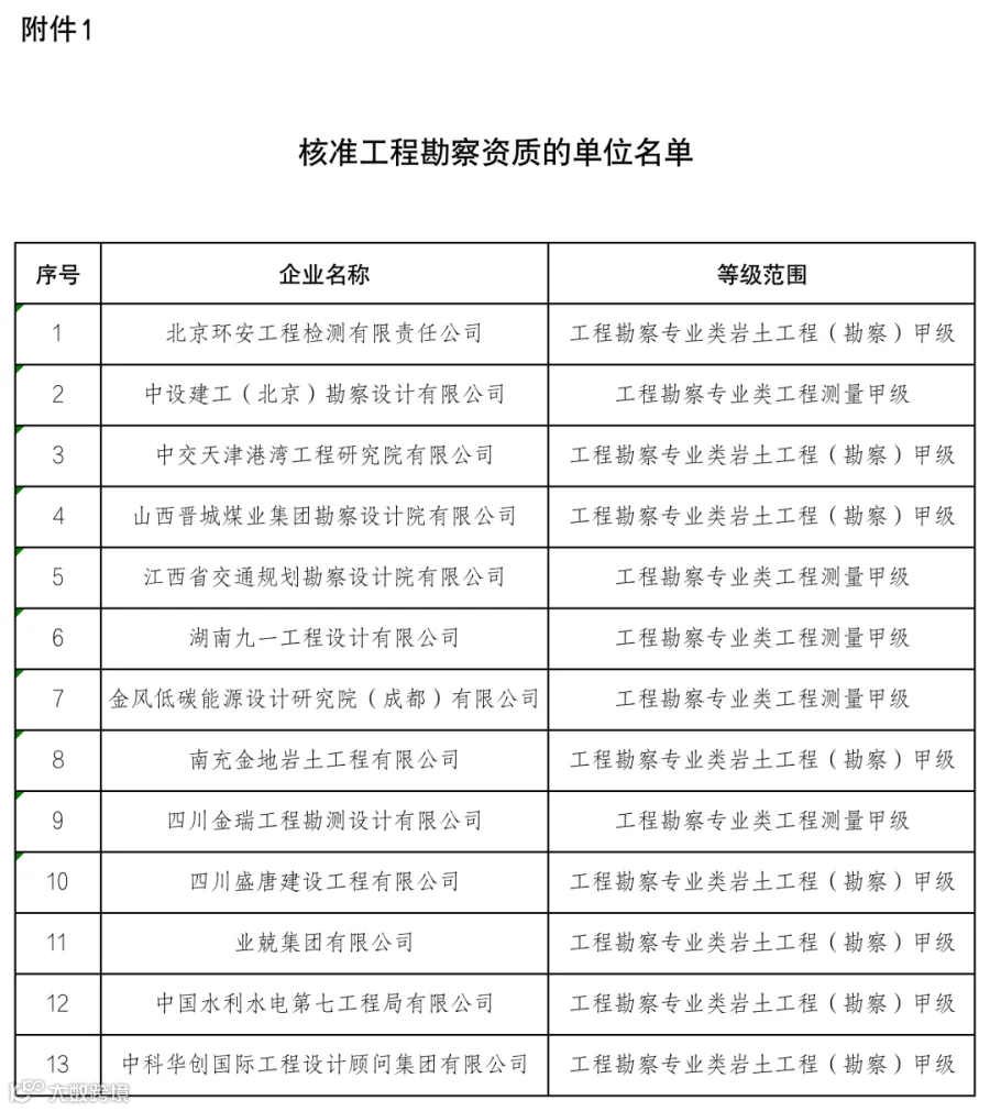 附件:1.核准工程勘察资质的单位名单