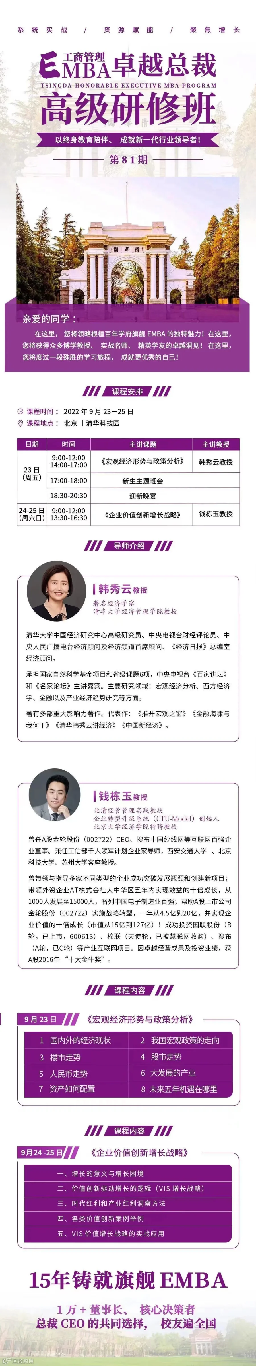欢迎加入:清大·工商管理(EMBA)总裁高级研修班