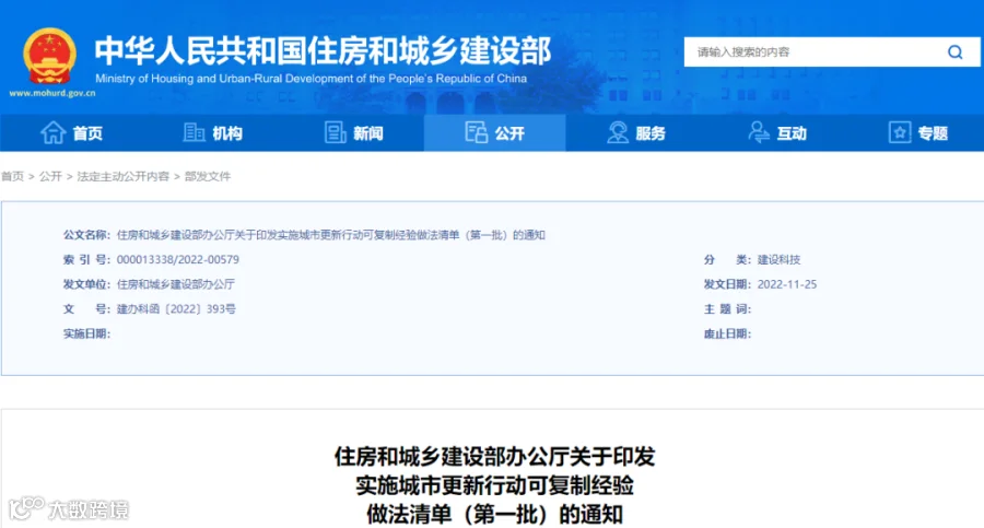 住建部总结城市更新试点城市和各地经验做法,形成《实施城市更新行动可复制经验做法清单(第一批)》并印发。