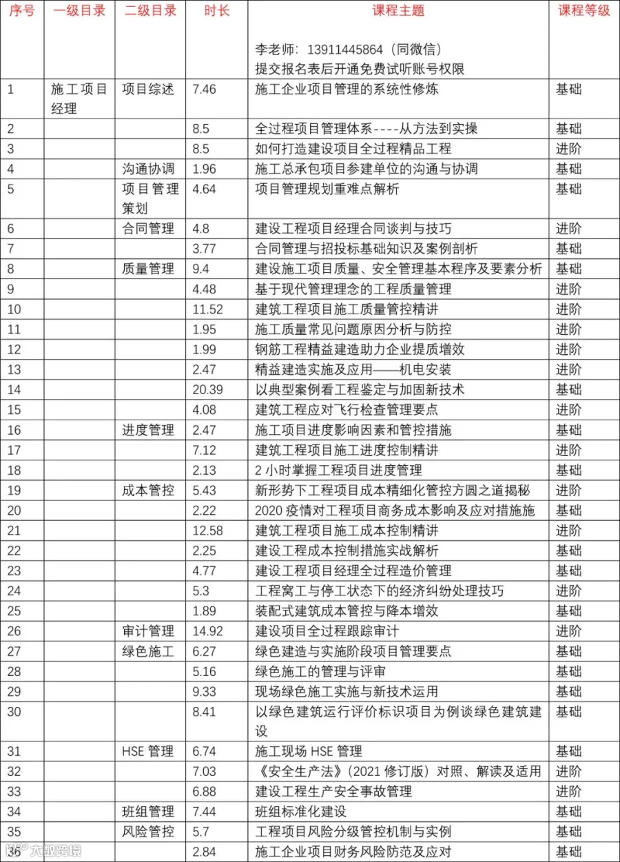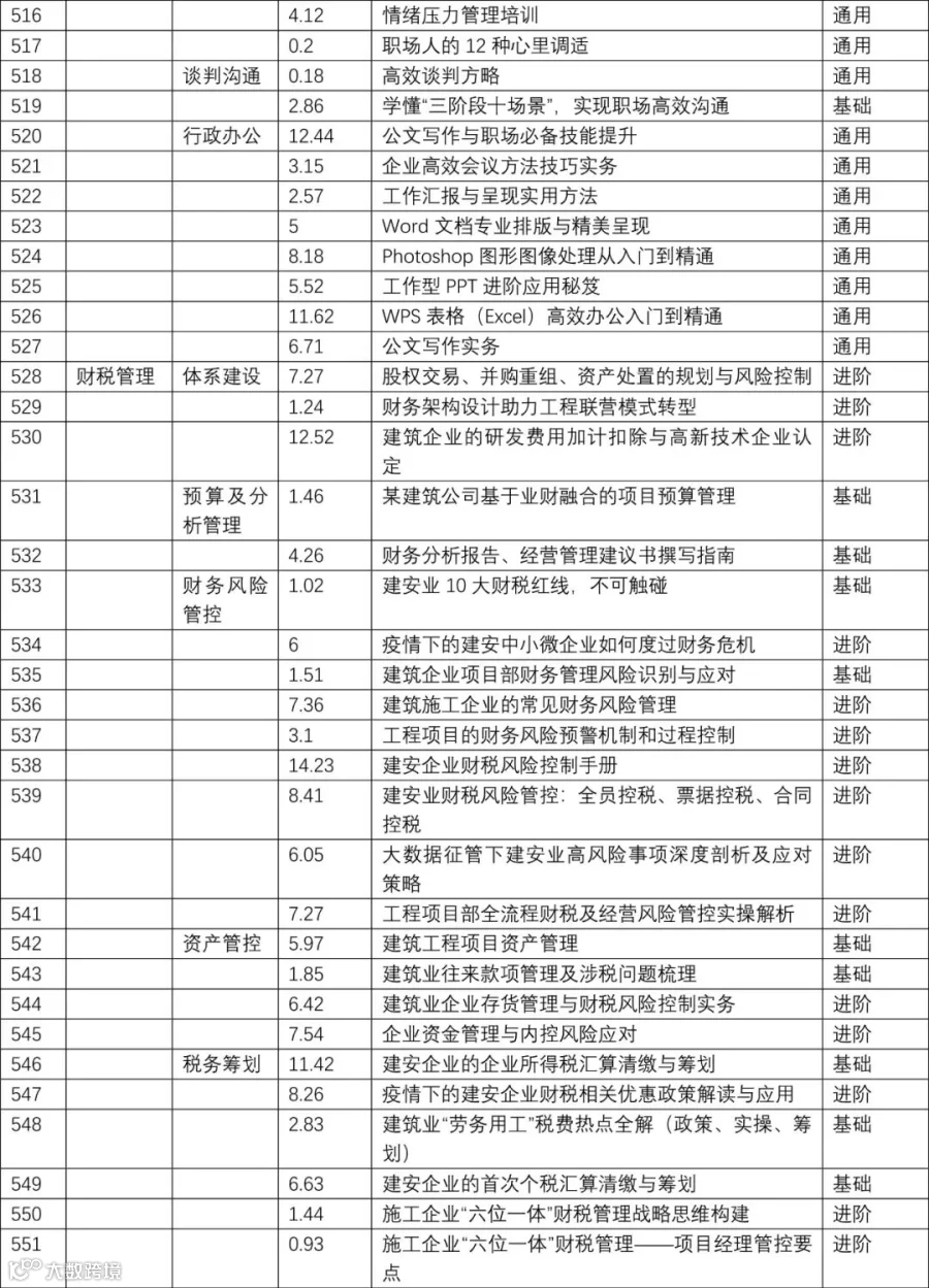 2022年 | 最新建设行业网络视频 课程主题 目录表