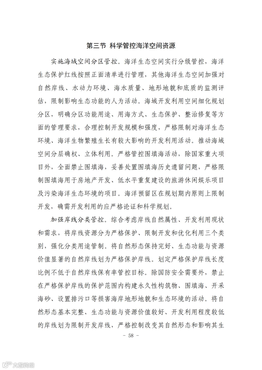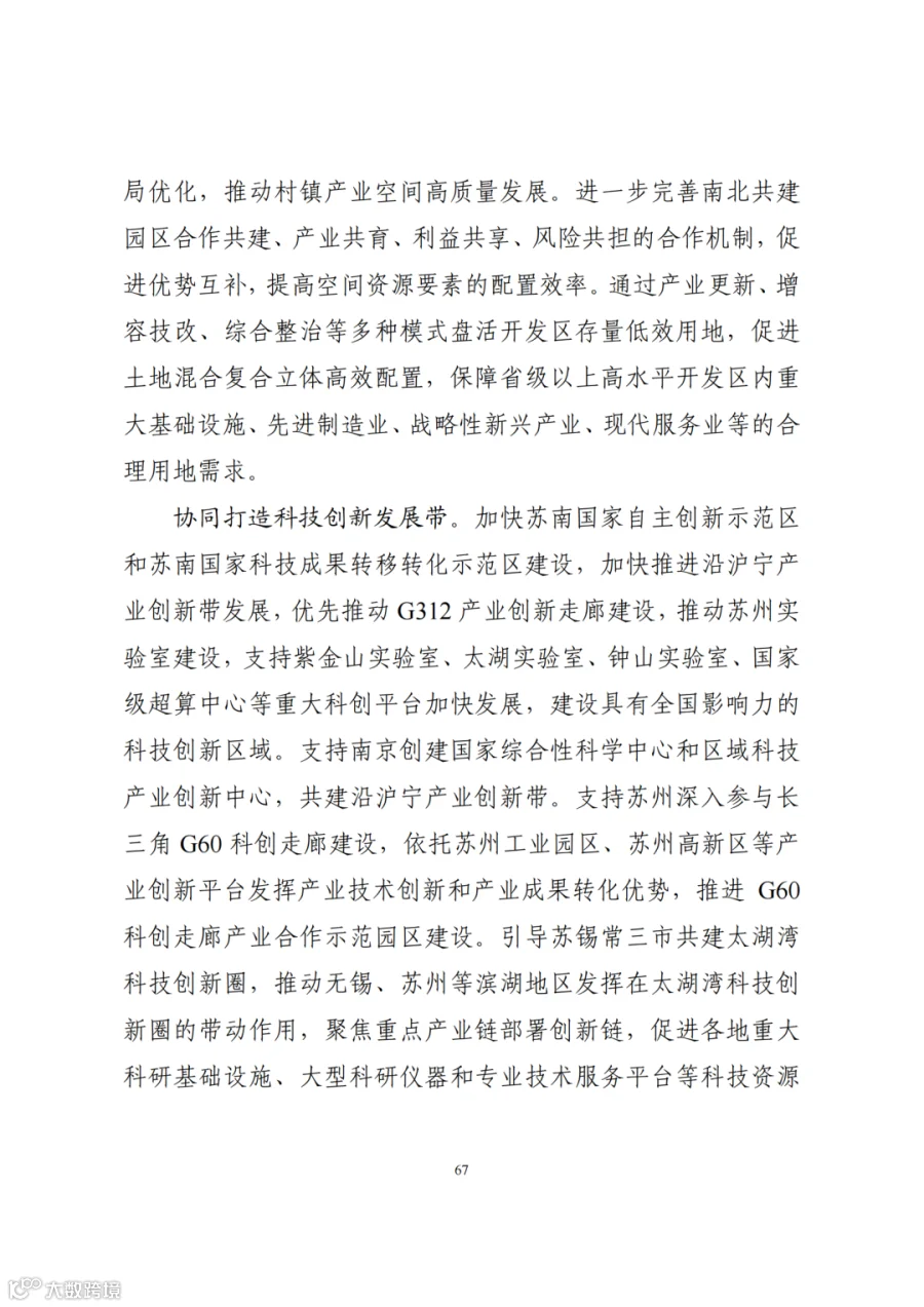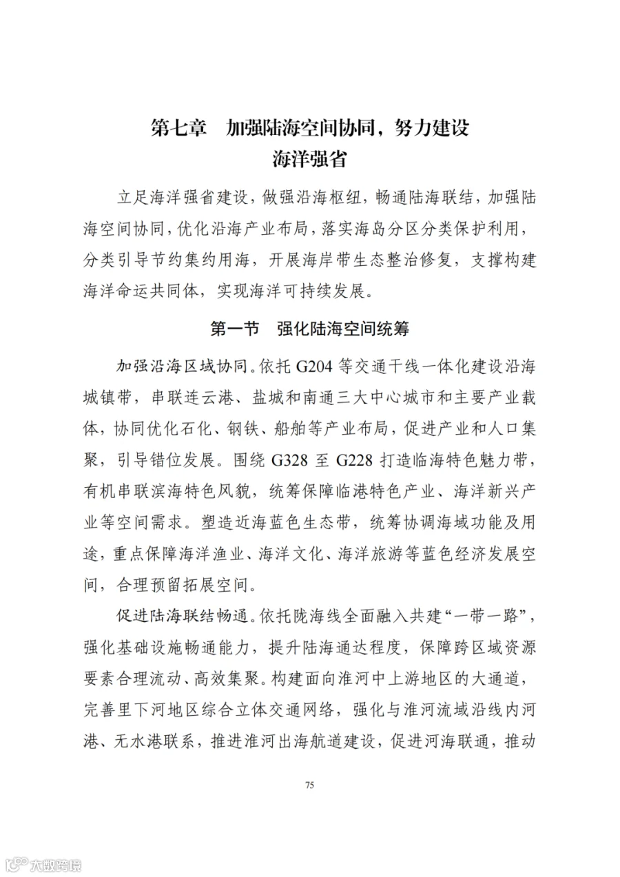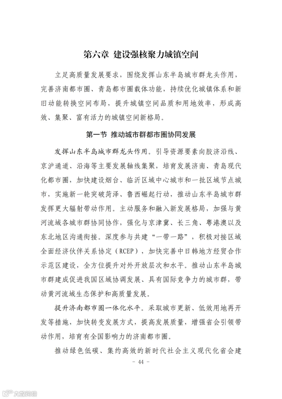 三、构建支撑新发展格局的国土空间体系。深入实施区域协调发展战略、区域重大战略、主体功能区战略、新型城镇化战略、乡村振兴战略,促进形成主体功能明显、优势互补、高质量发展的国土空间开发保护新格局。深度融入长江经济带发展、长三角一体化发展战略,共同将长三角打造成为率先基本实现现代化引领区和改革开放新高地,加强与京津冀协同发展、粤港澳大湾区建设协调布局,加快海洋强省建设,高质量共建“一带一路”,推进更高起点更高层次对外开放。