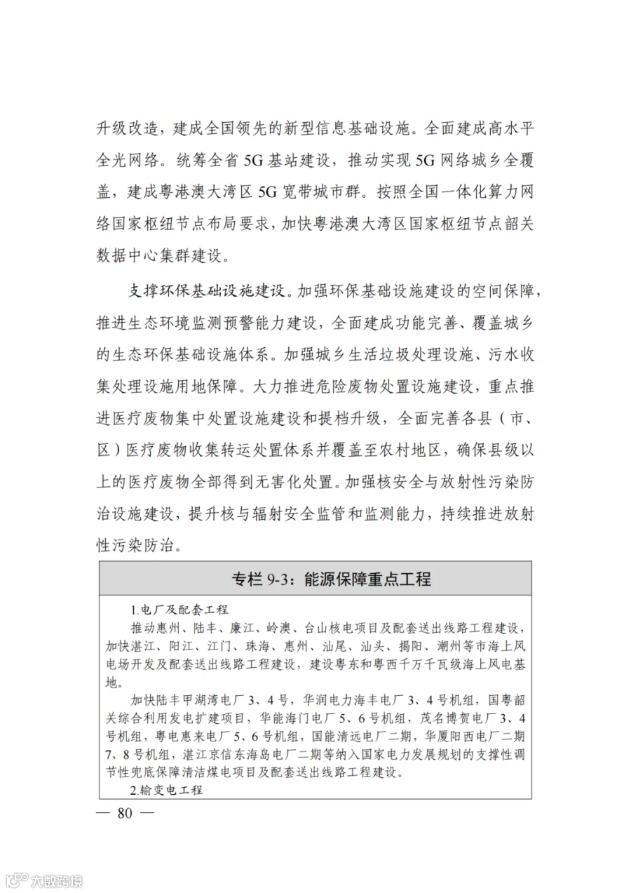 加快陆丰甲湖湾电厂3、4号,华润电力海丰电厂3、4号机组,国粤韶关综合利用发电扩建项目,华能海门电厂5、6号机组,茂名博贺电厂3、4号机组,粤电惠来电厂5、6号机组,国能清远电厂二期,华厦阳西电厂二期7、8号机组,湛江京信东海岛电厂二期等纳入国家电力发展规划的支撑性调节性兜底保障清洁煤电项目及配套送出线路工程建设。