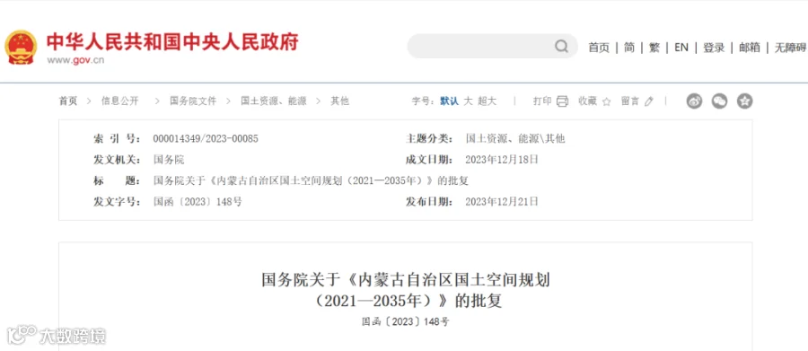 国务院关于《内蒙古自治区国土空间规划