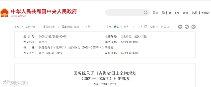 国务院关于《青海省国土空间规划