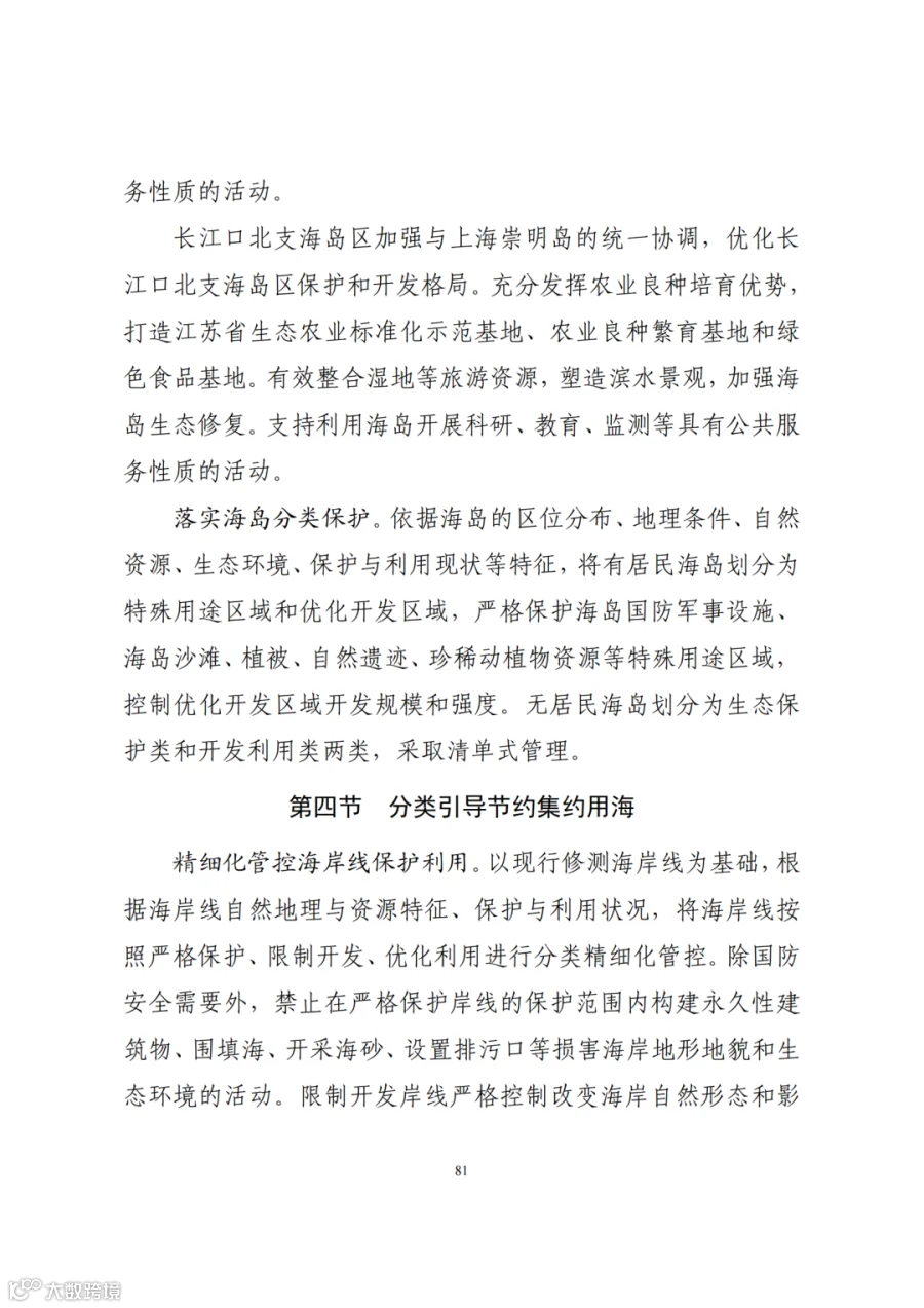 四、系统优化国土空间开发保护格局。发挥区域比较优势,优化主体功能定位,细化主体功能区划分,完善差别化支持政策。加强耕地精细化利用,夯实国家热带现代农业基地,建设南繁育种基地,分类分区优化村庄布局,促进乡村振兴。建立以海南热带雨林国家公园为主体的自然保护地体系,严格河湖水域空间管控,加强浅海水域、红树林、珊瑚礁、海草床及潟湖等滨海湿地保护,构建“山—廊—海—岛”一体化的生态网络。提升海口发展能级,打造中国特色自由贸易港核心引领区,将三亚建成国际旅游消费中心核心功能区,打造世界级旅游度假目的地,打造城乡生活圈,完善均等共享的公共服务体系,构建现代化产业发展空间,形成绿色低碳、宜居韧性、高质量发展的城镇空间格局。统筹海岸线、海域、海岛开发保护活动,节约集约利用浅海近岸,完善海岛功能体系,持续优化海洋空间格局。以国土空间规划“一张图”为依托,统筹协调各类基础设施空间需求,加强海水淡化、雨洪水等非常规水利用,构建陆海统筹的现代化基础设施网络,提升国土空间承载能力。健全文化遗产与自然遗产空间保护机制,强化整体保护和系统活化利用,构建文化资源、自然资源、景观资源整体保护的陆海一体空间体系,营造向海而生、椰风海韵的景观特色,展现海洋文化魅力,把海南建设成为展示中华优秀文化的重要窗口。