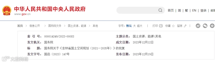 国务院关于《吉林省国土空间规划