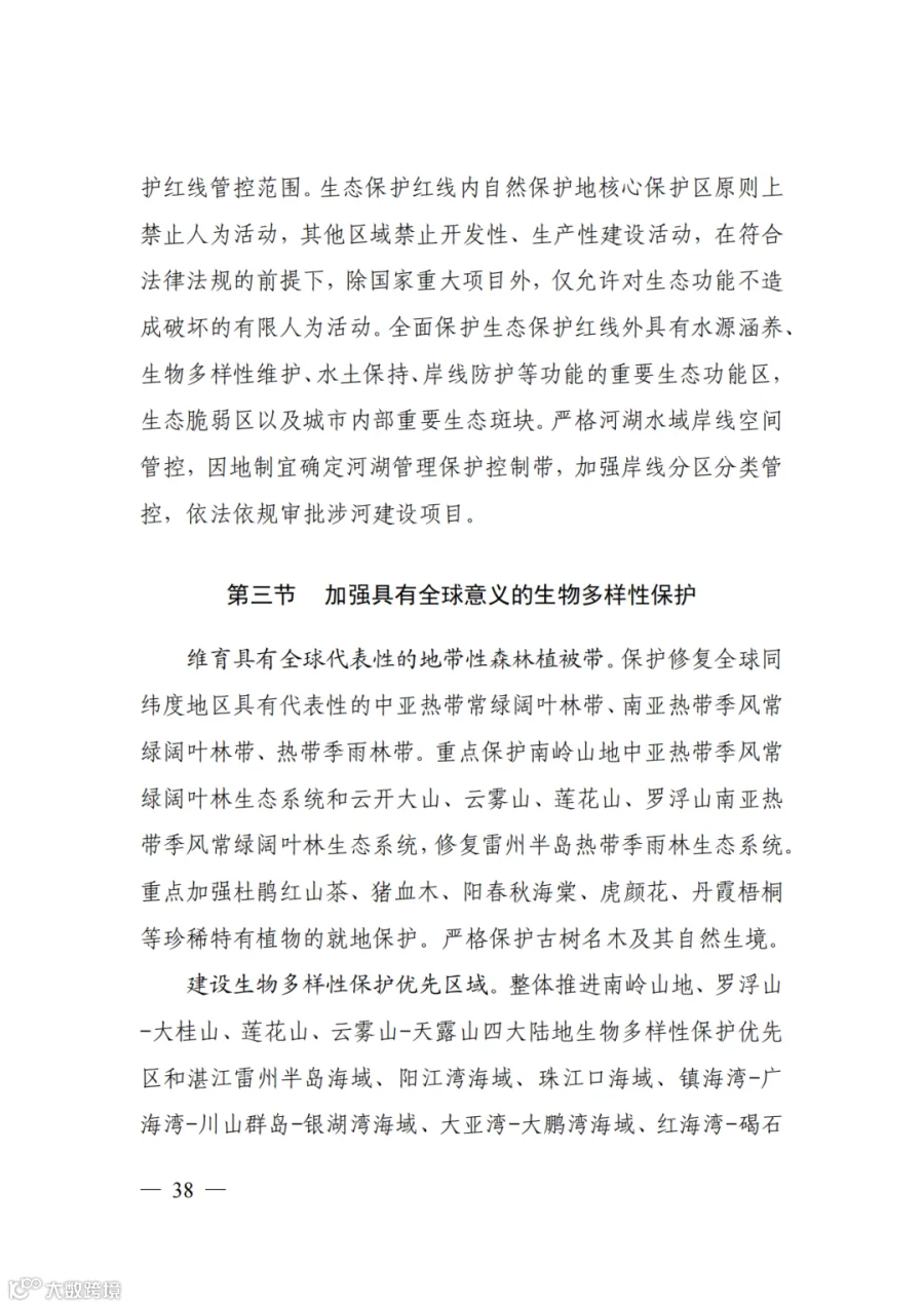 三、构建支撑新发展格局的国土空间体系。深入实施区域协调发展战略、区域重大战略、主体功能区战略、新型城镇化战略、乡村振兴战略和海洋强国战略,坚持陆海统筹、江海联动,促进形成主体功能明显、优势互补、高质量发展的国土空间开发保护新格局。对接融入粤港澳大湾区建设,服务西部陆海新通道建设,加快北部湾经济区向海发展,主动对接海南自由贸易港建设,筑牢我国西南中南安全屏障,构建面向东盟的国际大通道,打造西南中南地区开放发展新的战略支点,形成21世纪海上丝绸之路与丝绸之路经济带有机衔接的重要门户。