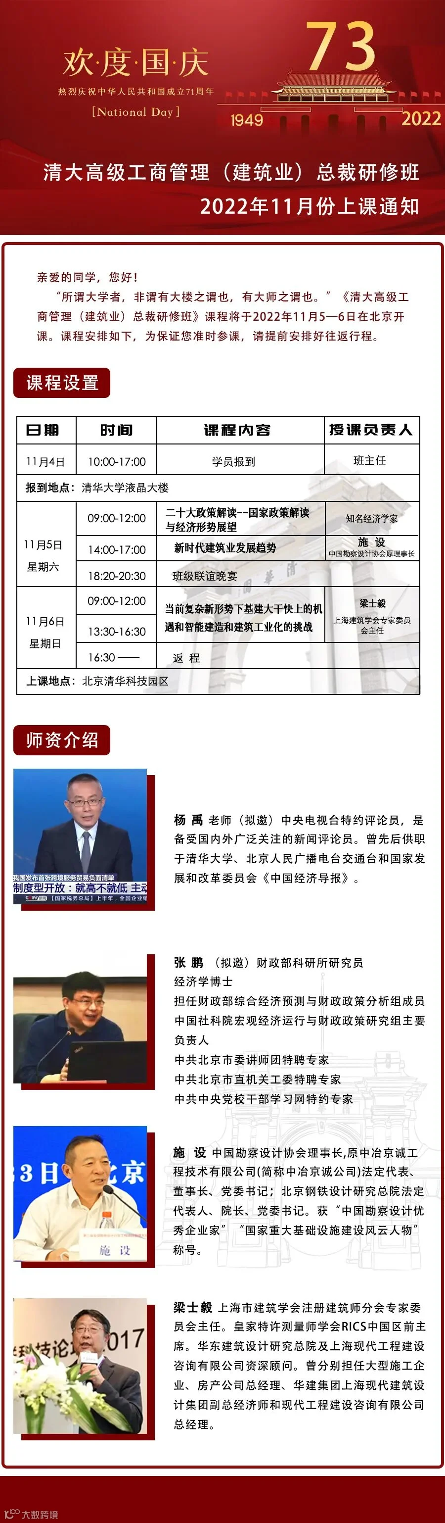 欢迎加入:清大高级工商管理(建筑业)总裁研修班
