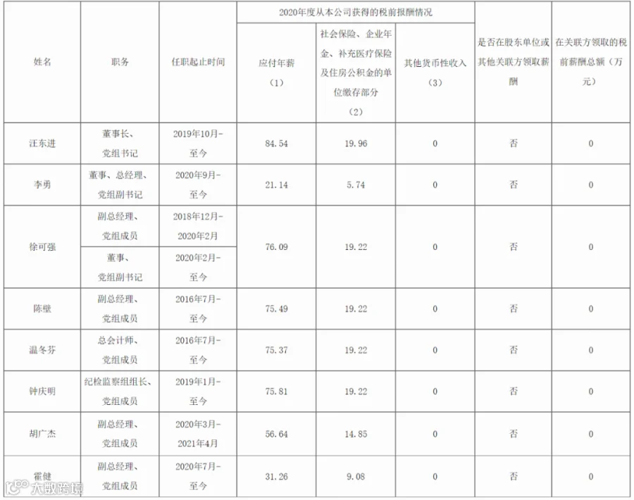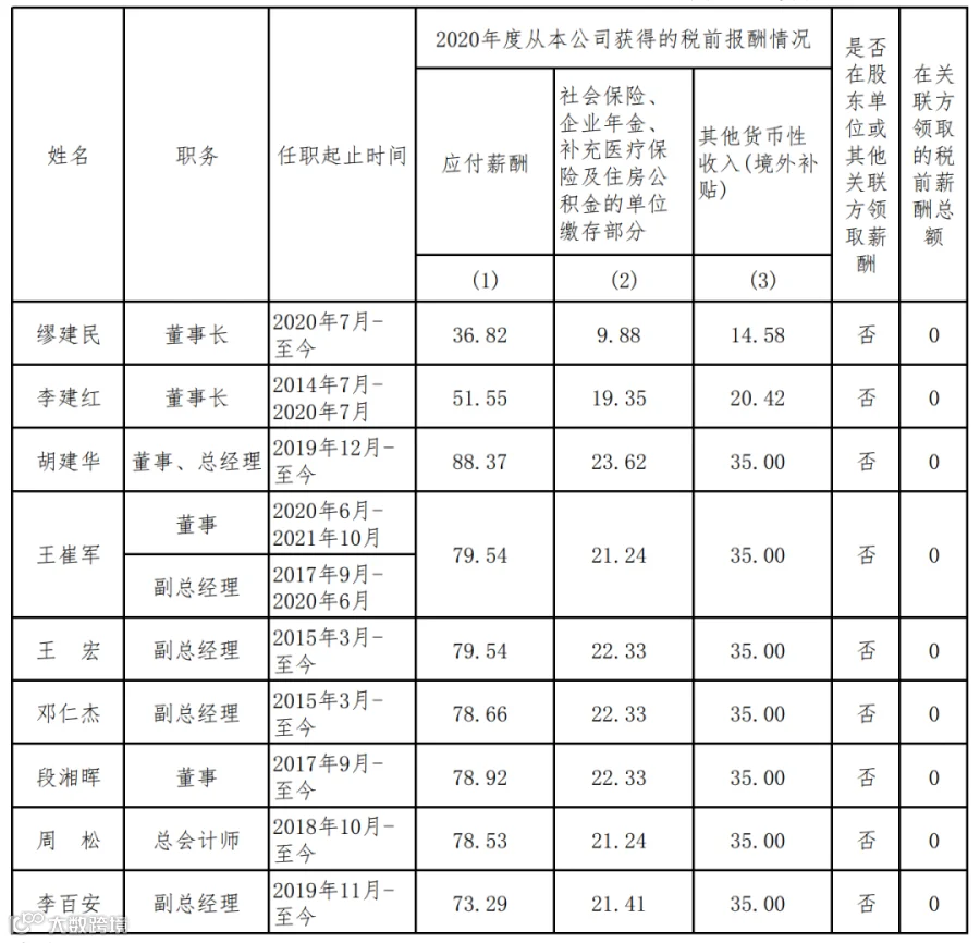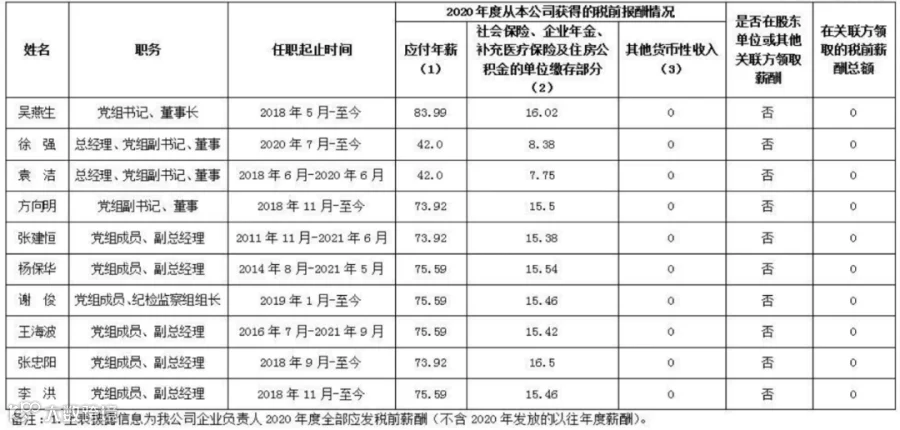 计算公式:2020税前报酬合计=应付年薪+社会保险、企业年金、补充医疗保险及住房公积金的单位缴存部分+其他货币性收入+2020年任期激励收入