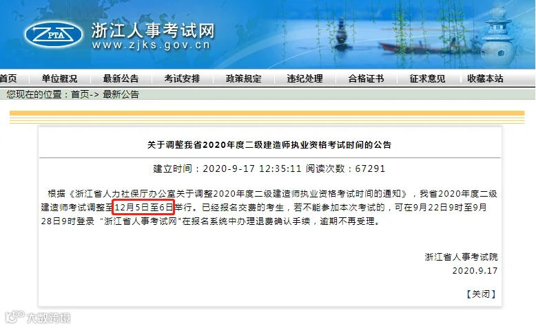 而此前广东省、浙江省也发文,二建考试延后至12月5日至6日举行。