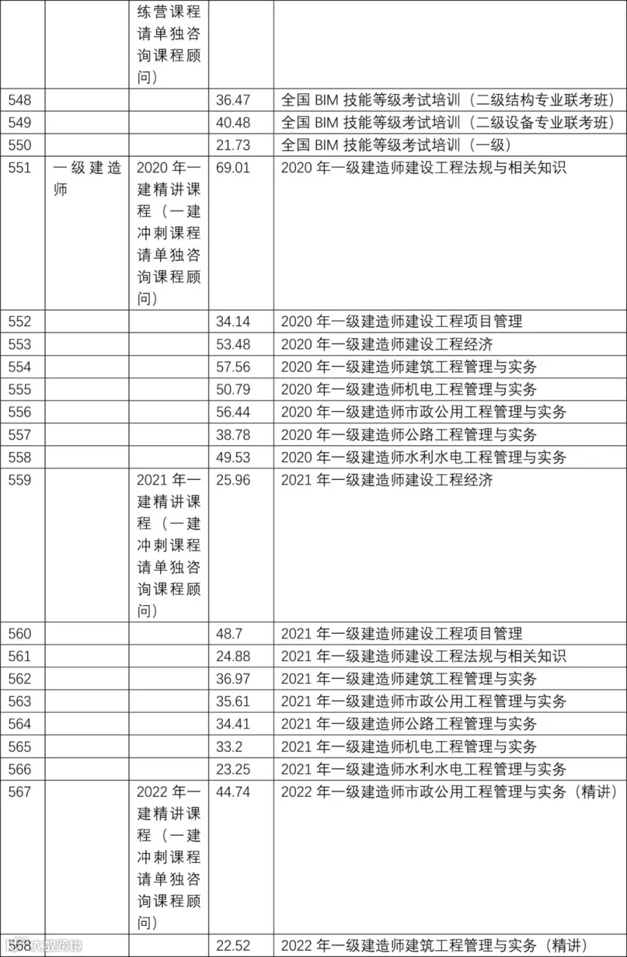 2022年 | 最新建设行业网络视频 课程主题 目录表