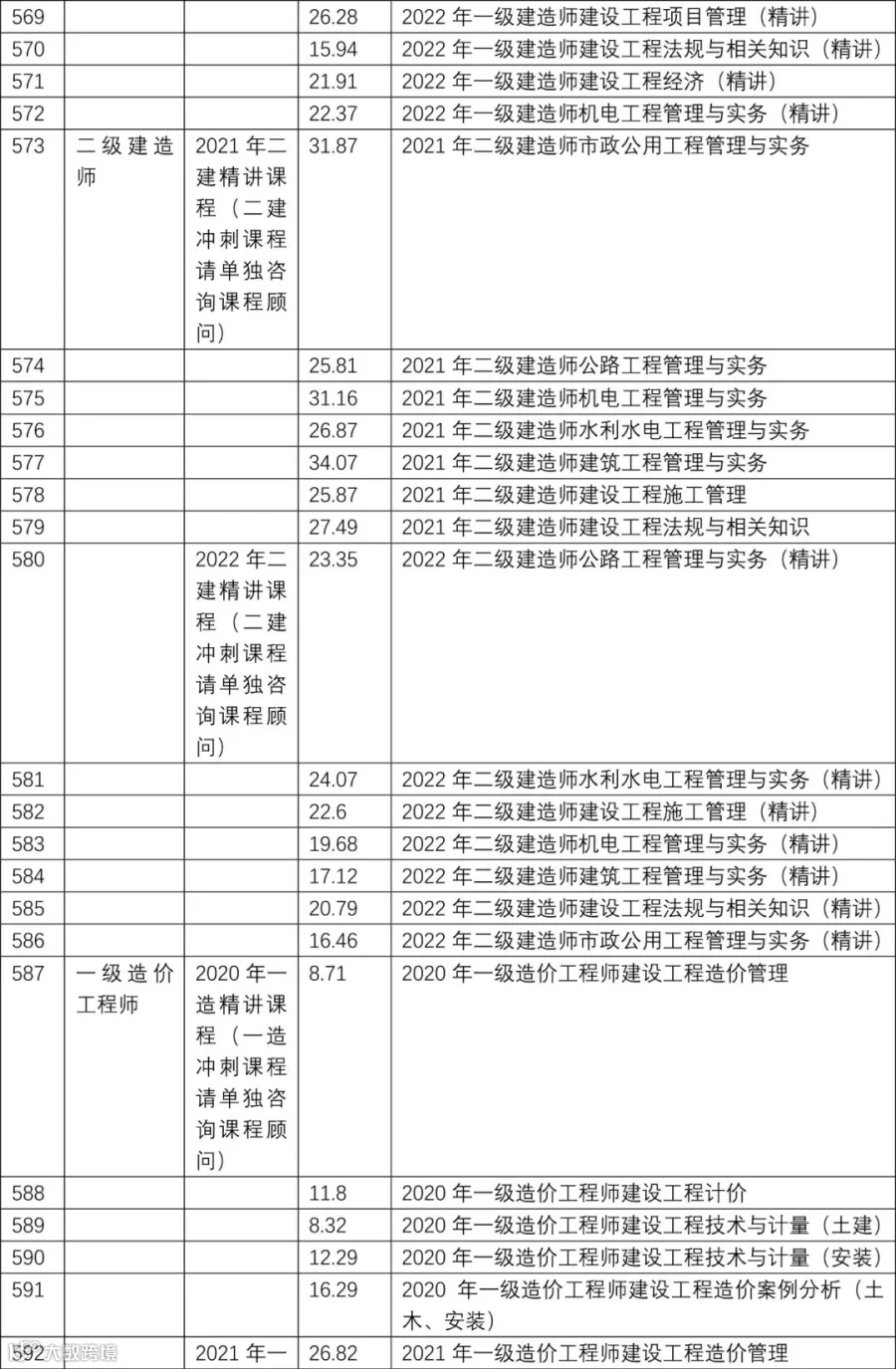 2022年 | 最新建设行业网络视频 课程主题 目录表