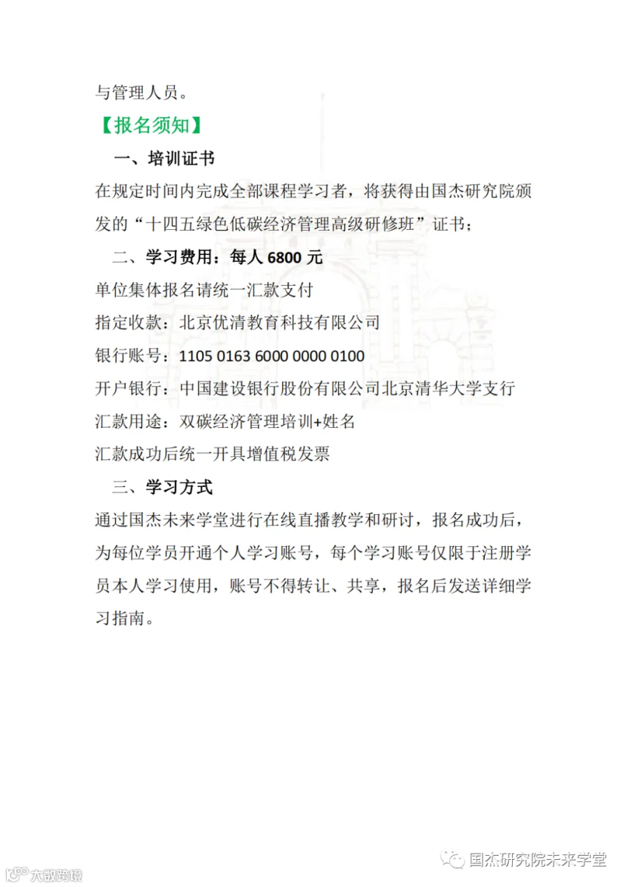 欢迎加入:国杰“十四五” 绿色低碳经济管理高级研修班