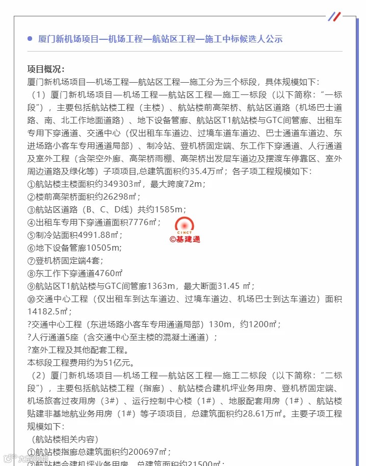 没错,北京城建集团以16亿成功中标厦门新机场工程三标段项目。北京城建集团中标的三标段包括停车楼、交通中心、机场旅客过夜用房、东进场路小客车专用通道、管廊及地面道路等多个子项,总建筑面积28.66万平方米,是厦门新机场工程的重要配套设施,是代表厦门新机场整体形象和服务质量的重要工程。