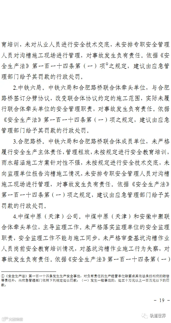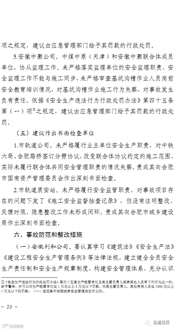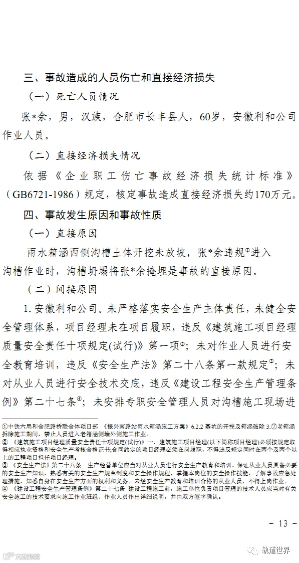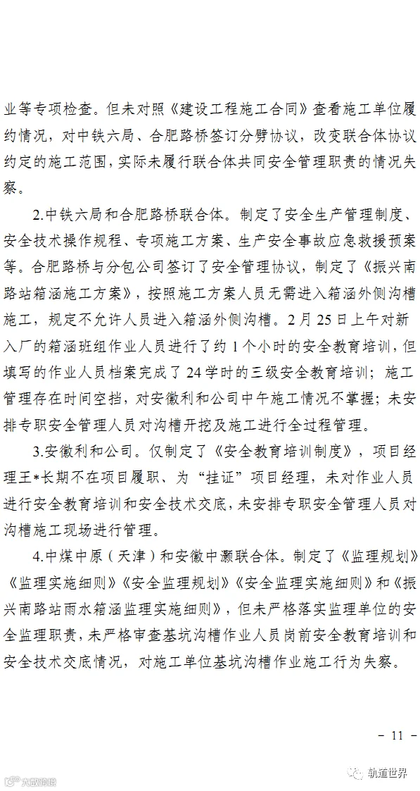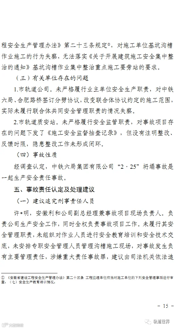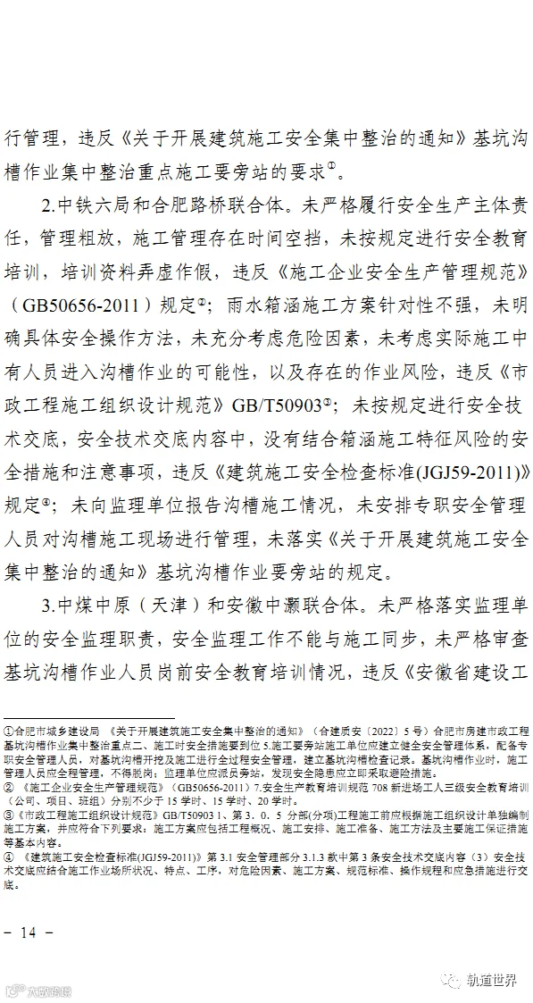 2022年2月25日14时50分左右,中铁六局集团有限公司和合肥市公路桥梁工程有限责任公司联合体(简称中铁六局和合肥路桥联合体)承建的合肥市轨道交通 6号线一期土建施工总承包3标项目的振兴路站雨水箱涵破除施工时,发生一起沟槽坍塌事故,造成 1人死亡。