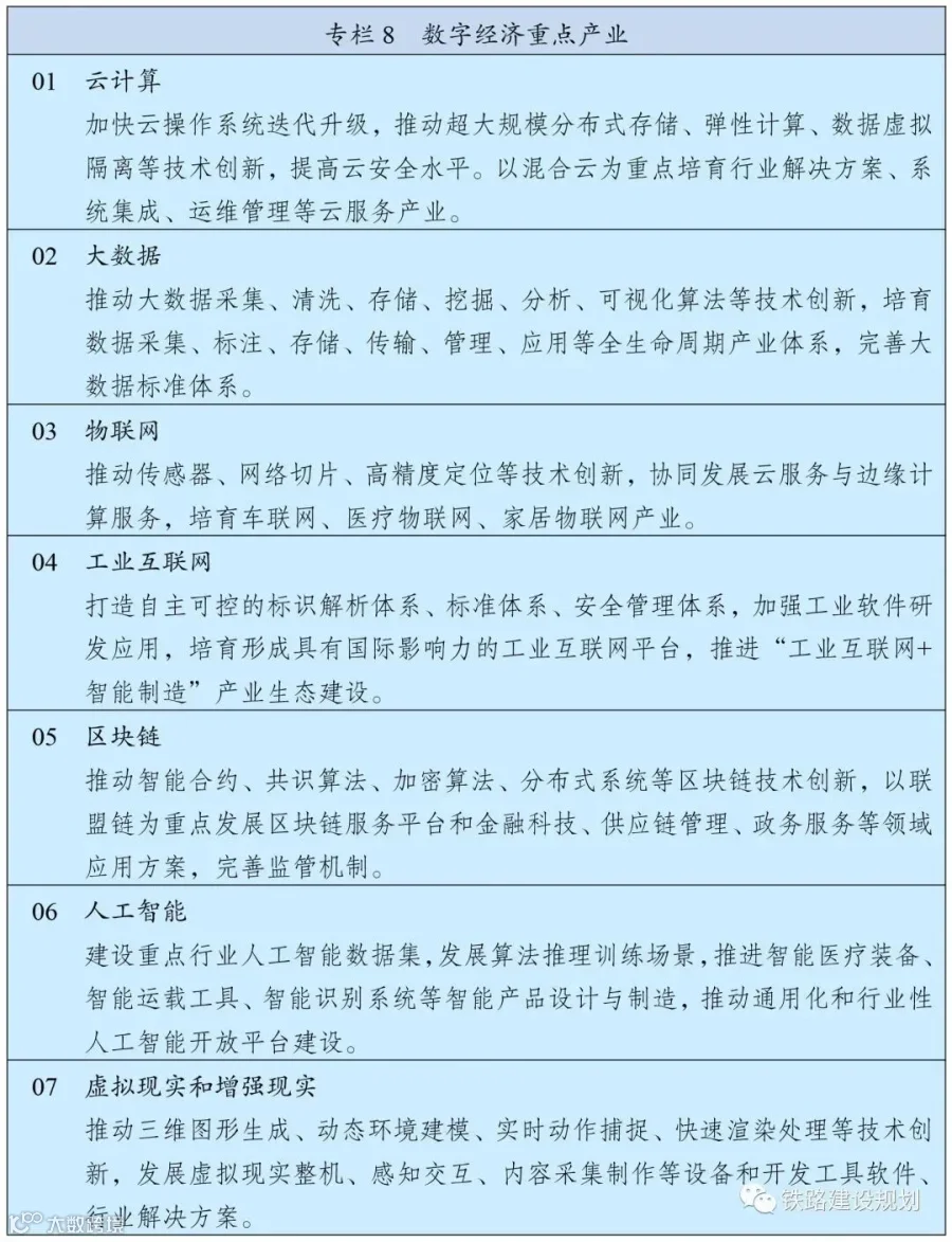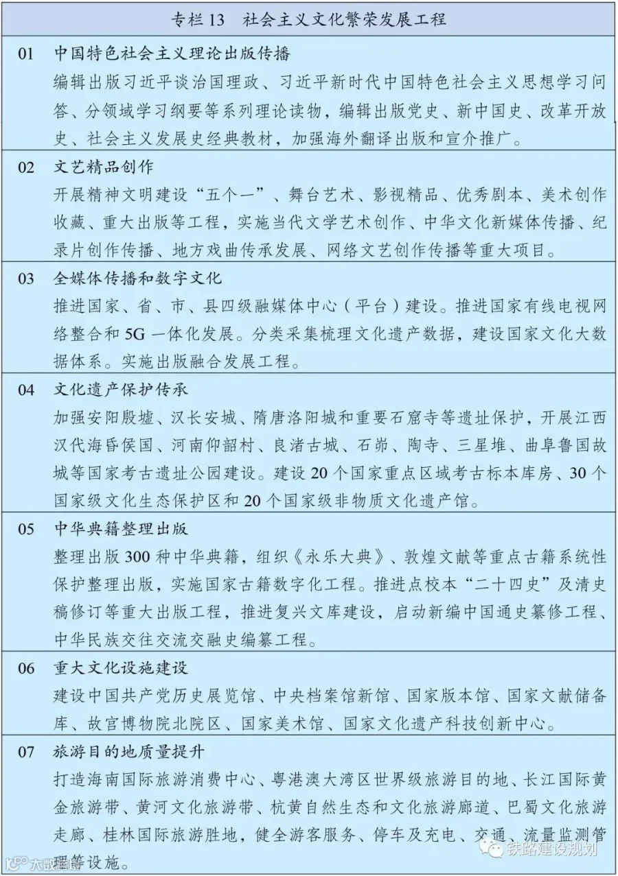 什么是“十四五”规划102项重大工程?“十四五”规划纲要中的20 个专栏,除去经济社会发展主要指标专栏,以及数字经济重点的7 个产业专栏和数字化应用10 大场景专栏外,其余17 个专栏包含的102 项工程即为“十四五”规划102 项重大工程项目。
