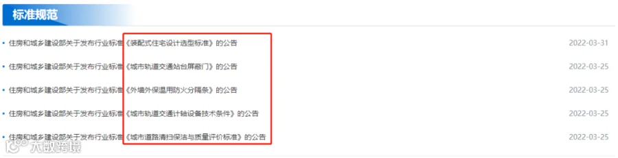 此外,近日住建部官网还发布了5条行业标准的公告: