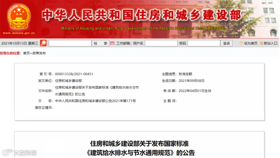 2021年10月14日,住建部官网公布9条关于国家标准的公告。明确自2022年4月1日起实施,全部条文必须严格执行!