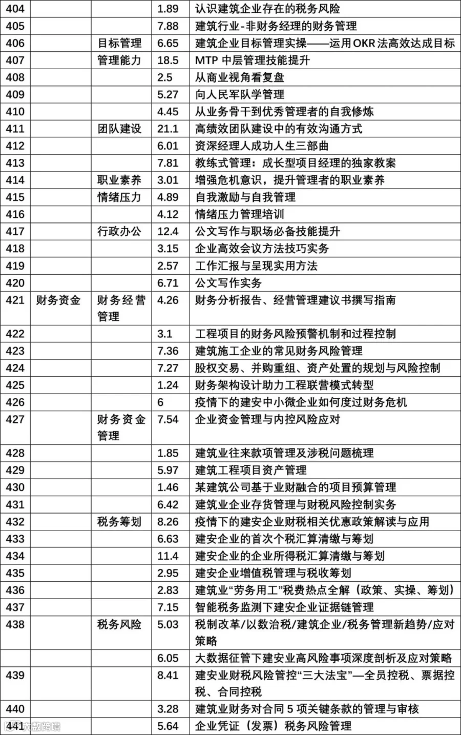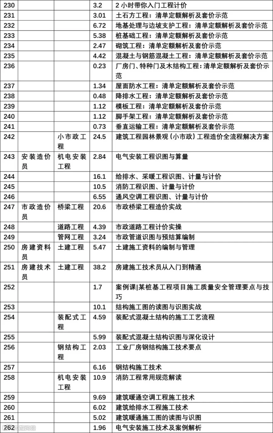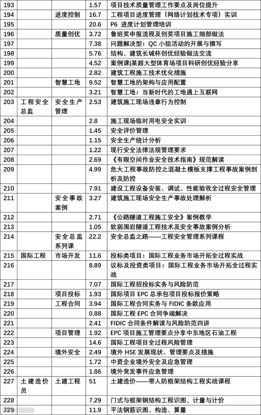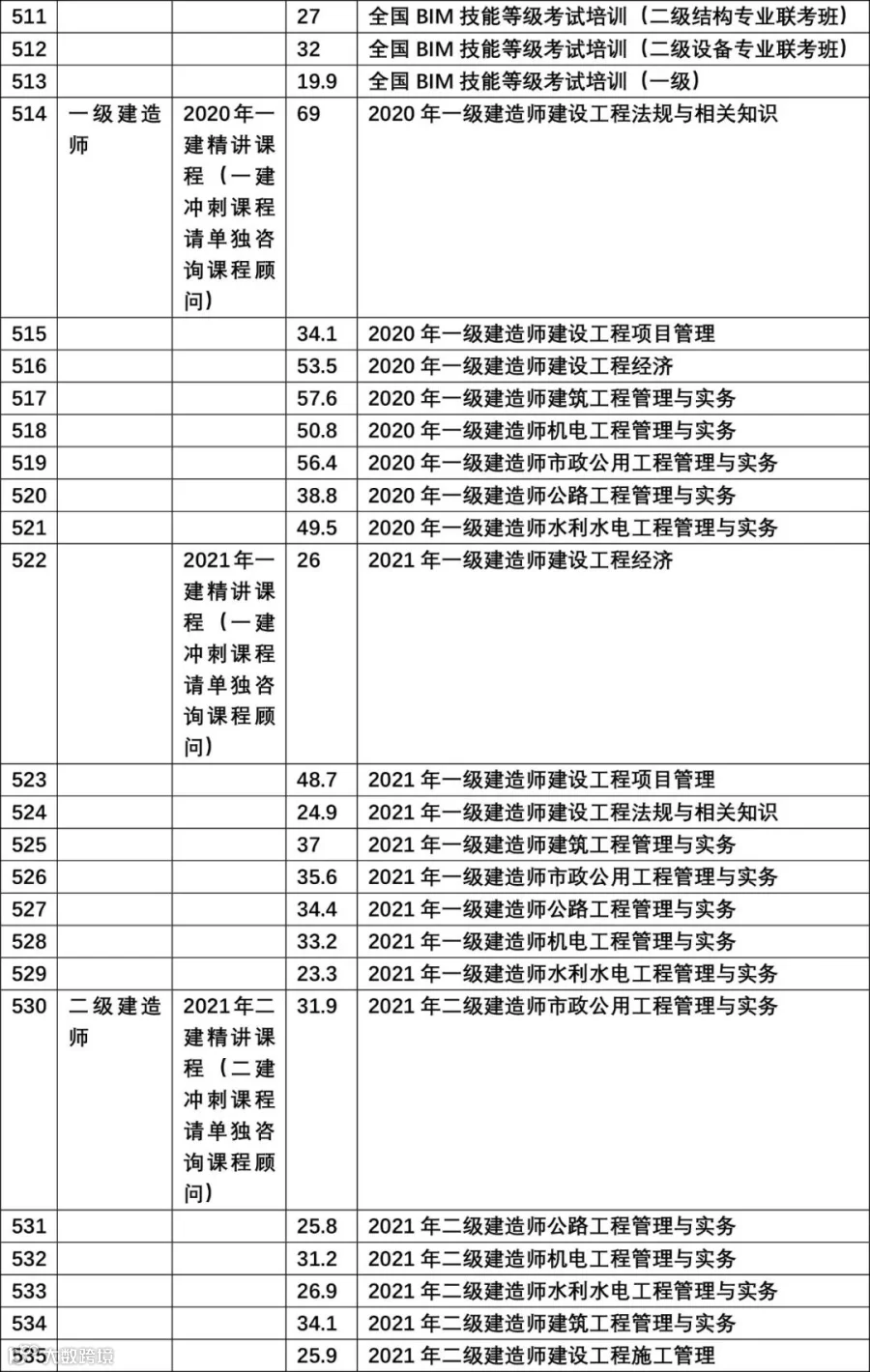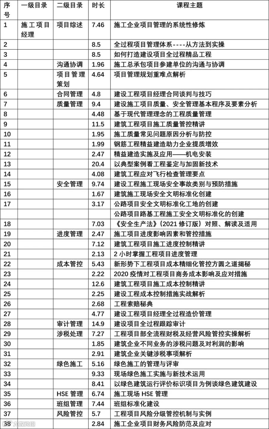 2022年 | 最新建设行业网络视频 课程主题 目录表