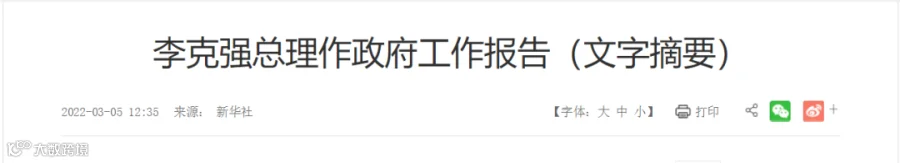 2022年3月5日上午9点,中华人民共和国第十三届全国全国人民代表大会第五次会议在北京人民大会堂开幕。国务院总理李克强关于政府工作的报告。