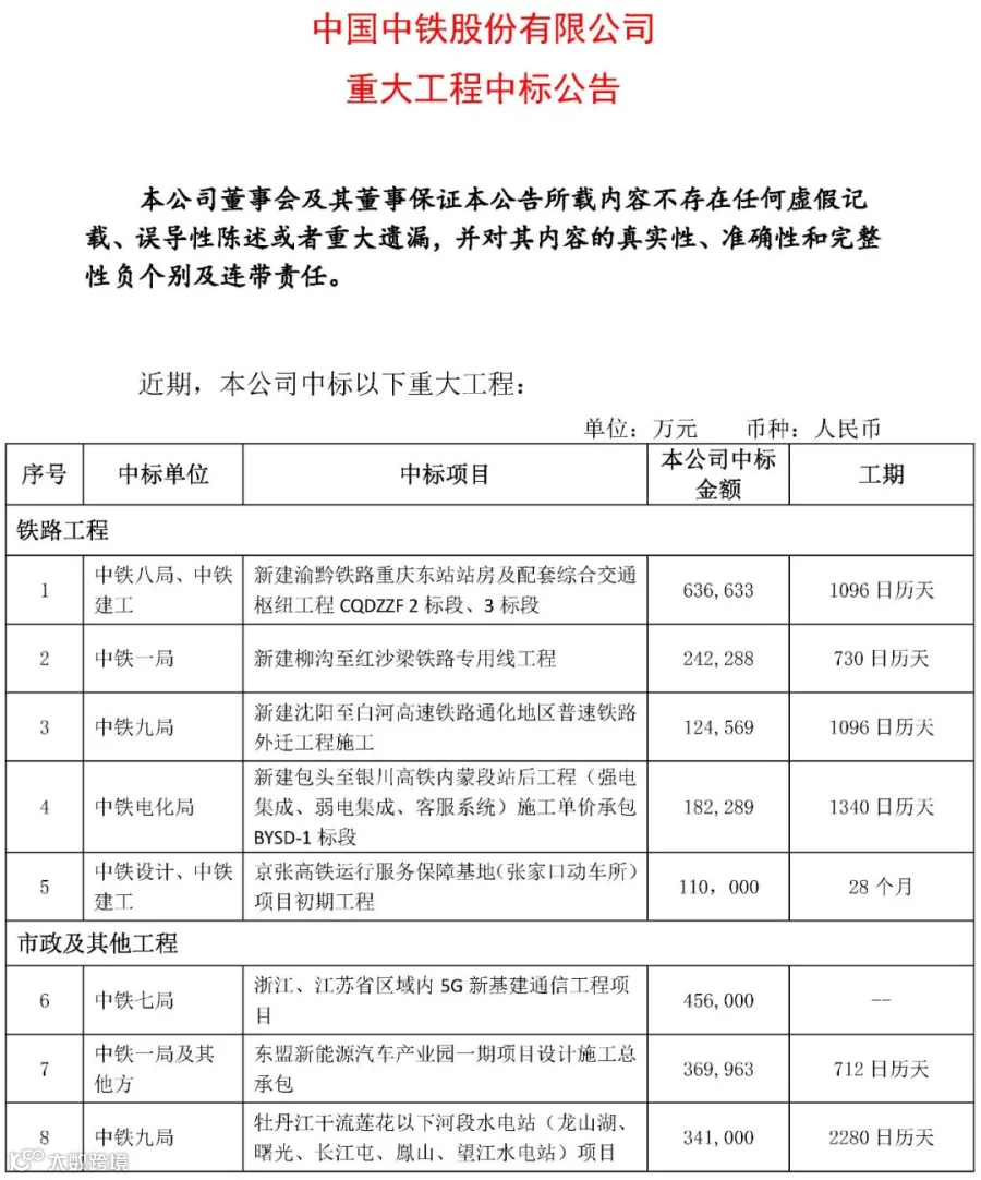 ▎来源:中国中铁、辽宁省交通运输厅、网络汇总