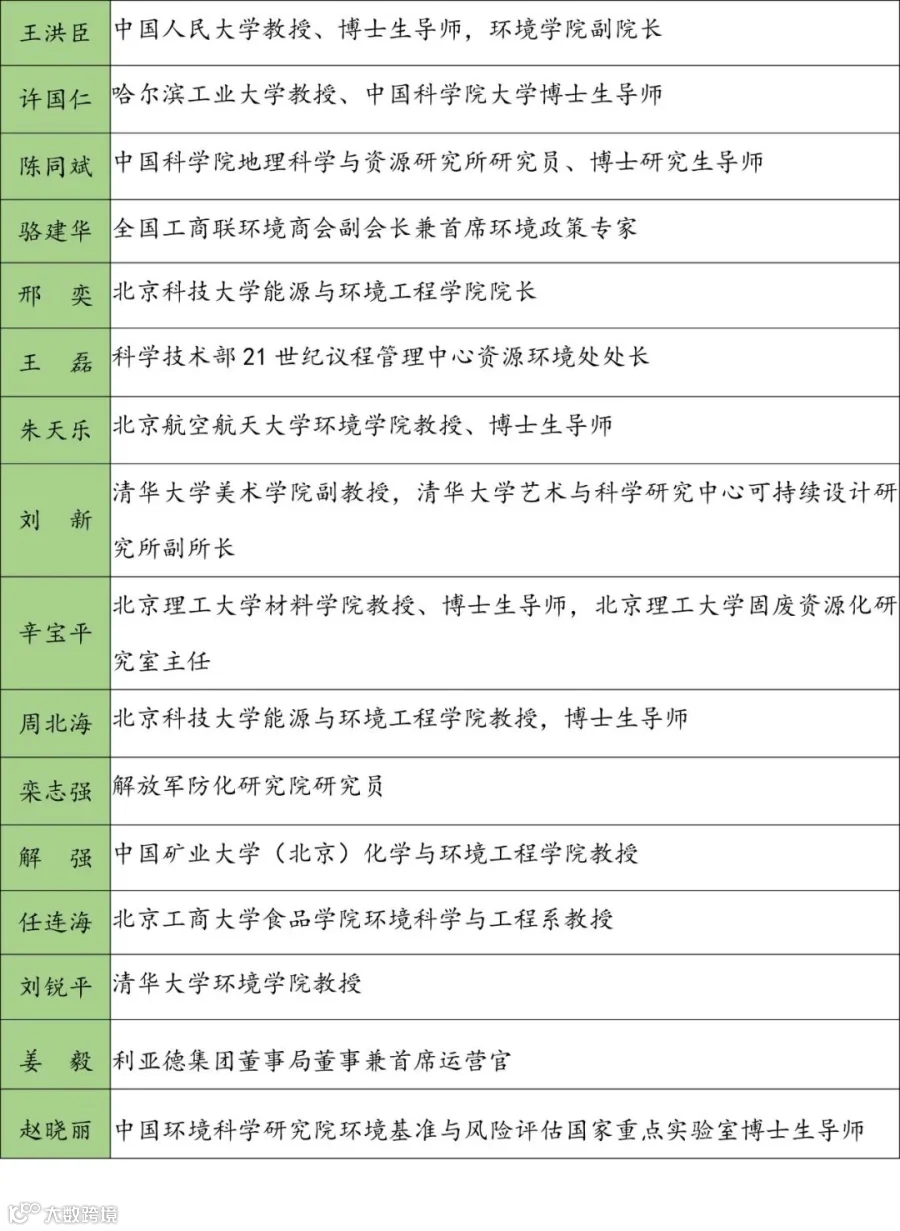 两院院士、环保政策专家、环境名校权威老师、国际专家
