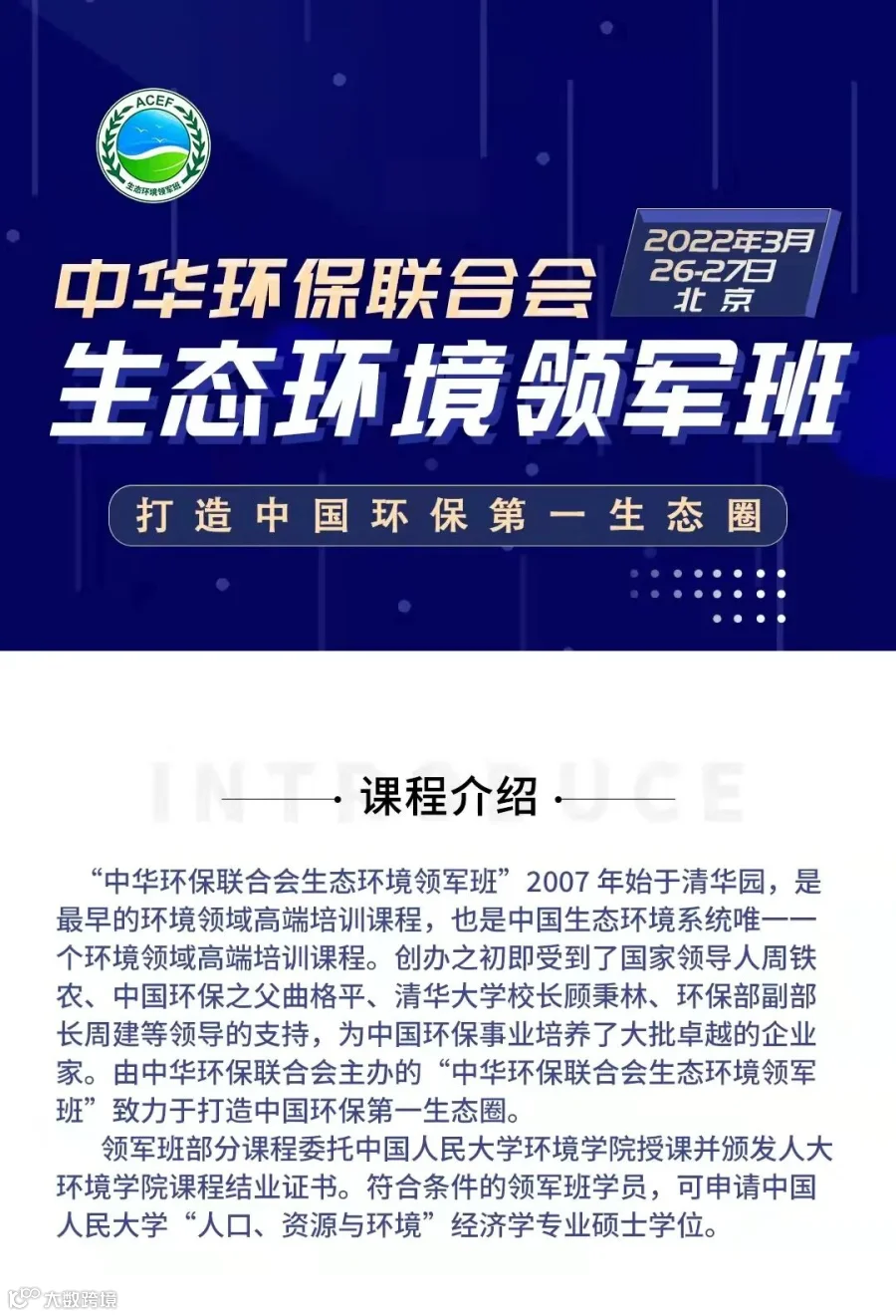 生态环境领军班第七期招生工作现已火热启动,欢迎各界有识之士踊跃报名!