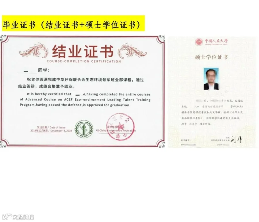 加入生态环境领军班即享推荐申请中国人民大学硕士学位,部分课程委托中国人民大学环境学院授课,颁发人大环境学院结业证书。