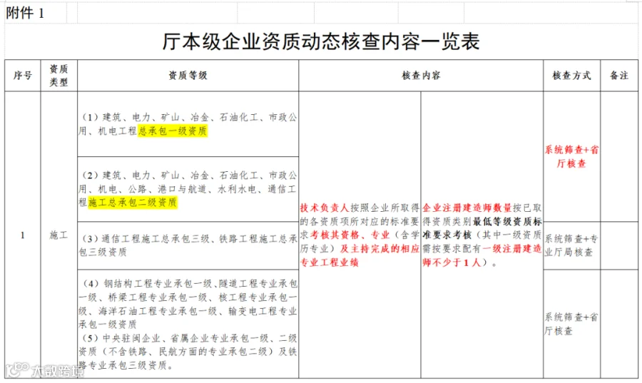 附件:1.厅本级企业资质动态核查内容一览表