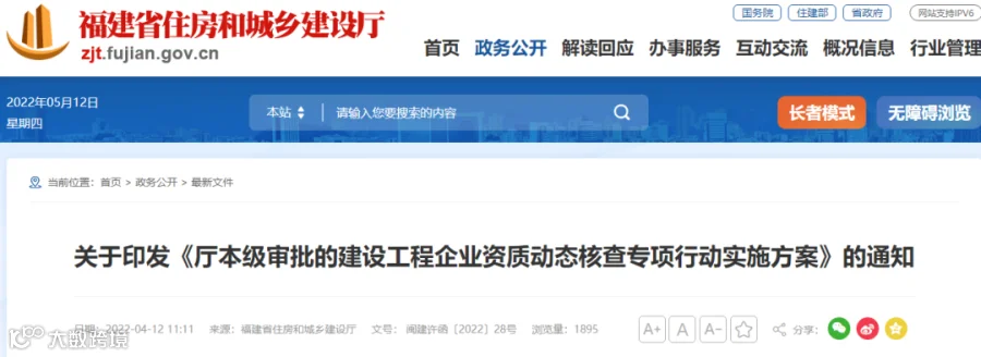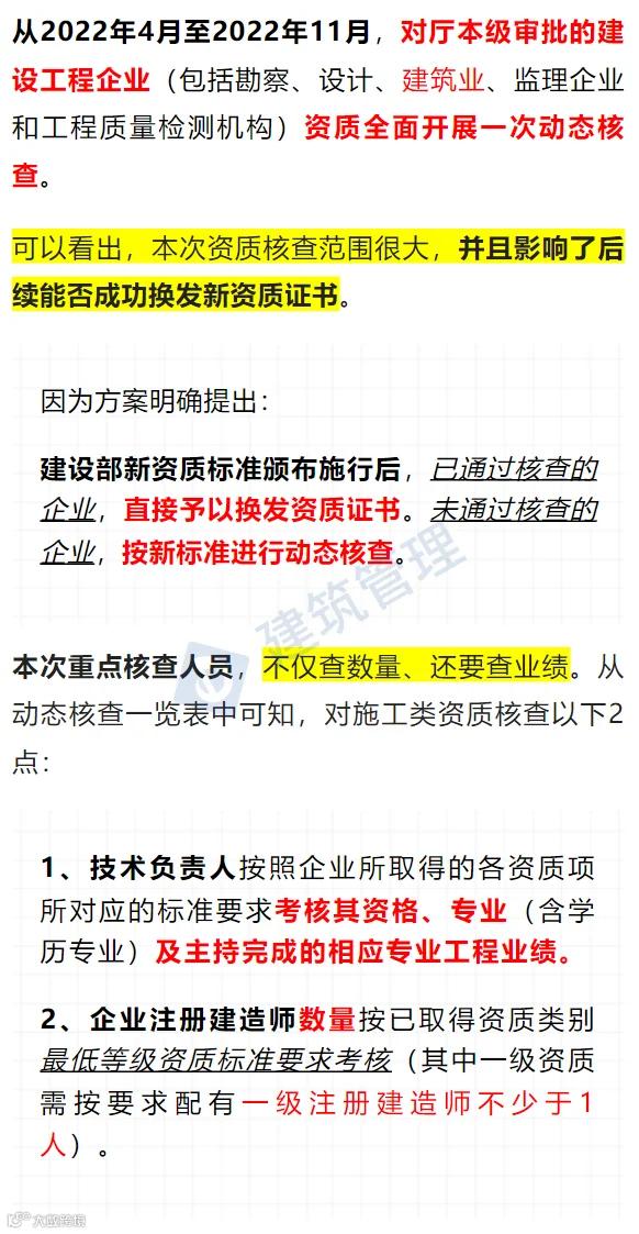 近日,福建省住建厅印发《厅本级审批的建设工程企业资质动态核查专项行动实施方案》,值得每一家企业注意。
