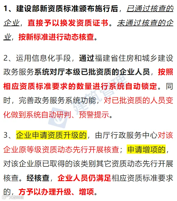 从福建这份文件可以看出,目前申请资质、升级资质的难度是很大的,尤其在新旧资质标准过渡期间,全国核查都非常严格。