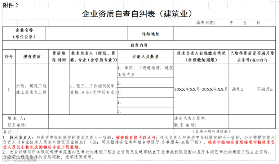 2.企业资质自查自纠表