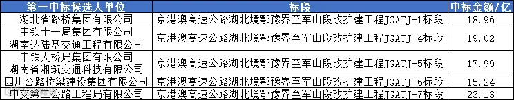 5月30日,湖北省交通运输厅发布:京港澳高速公路湖北境鄂豫界至军山段改扩建工程JGATJ-2、JGATJ-3施工招标复评评标结果公示。