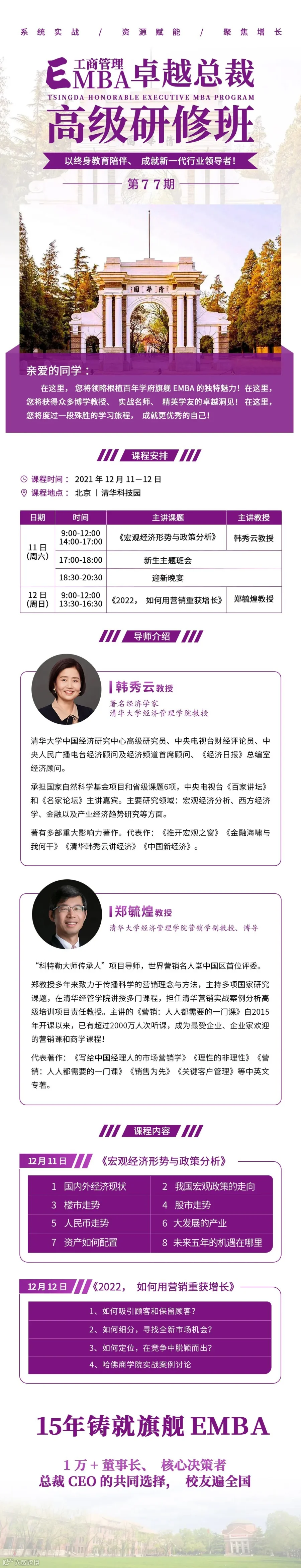 导读:12月11-12日|第77期 清大工商管理(EMBA)卓越总裁高级研修班开学典礼——旗舰EMBA